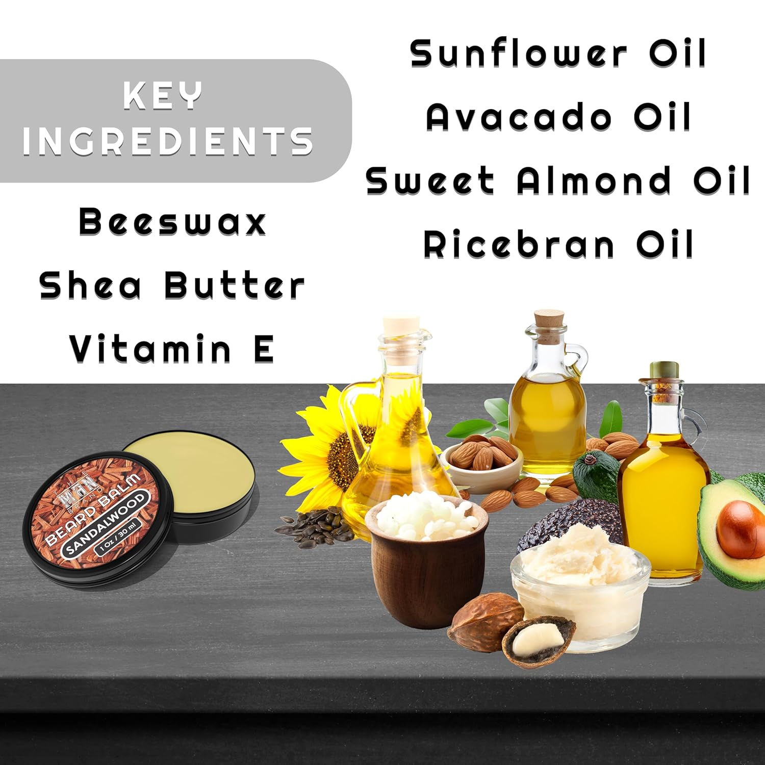 Sandalwood Beard Balm - Sandalwood Beard Care Balm - Beard Moisuturizing Sandalwood Balm - Sandalwood Beard Softner (1 Ounce, Sandalwood)
