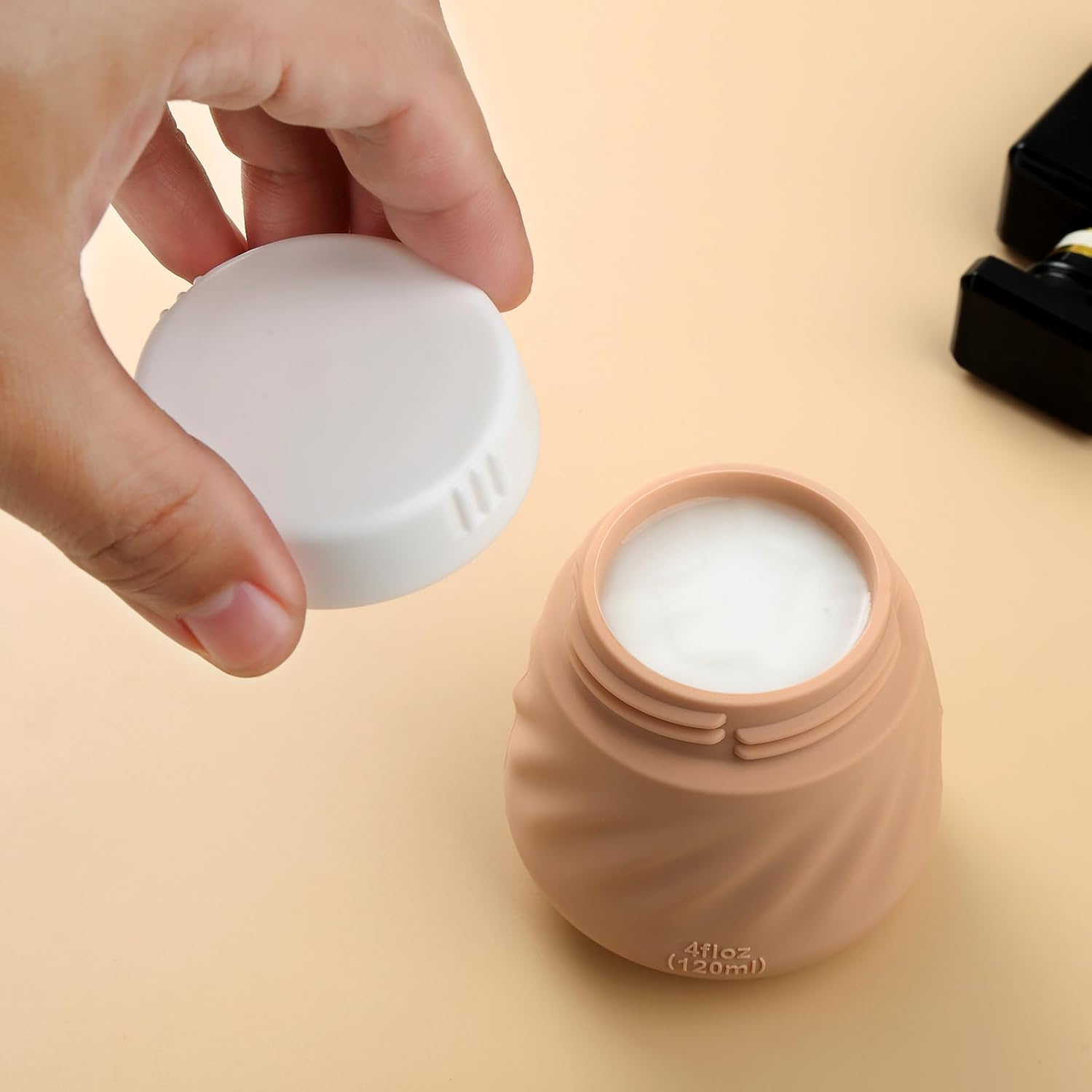 Gemice 4 OZ Travel Size Containers for Toiletries, 4-Pack Leak-Proof Silicone Slime Jars with Lids, BPA Free Small Round Cosmetic Slime Container for Lotion, Cream, Ointments, Travel Essentials