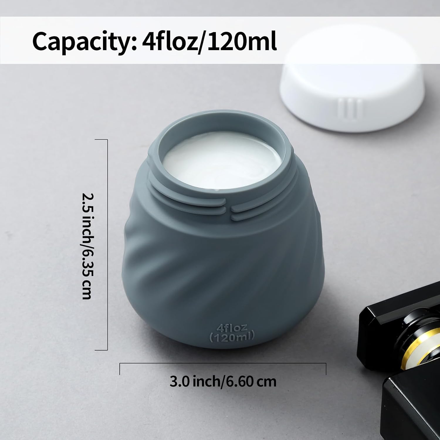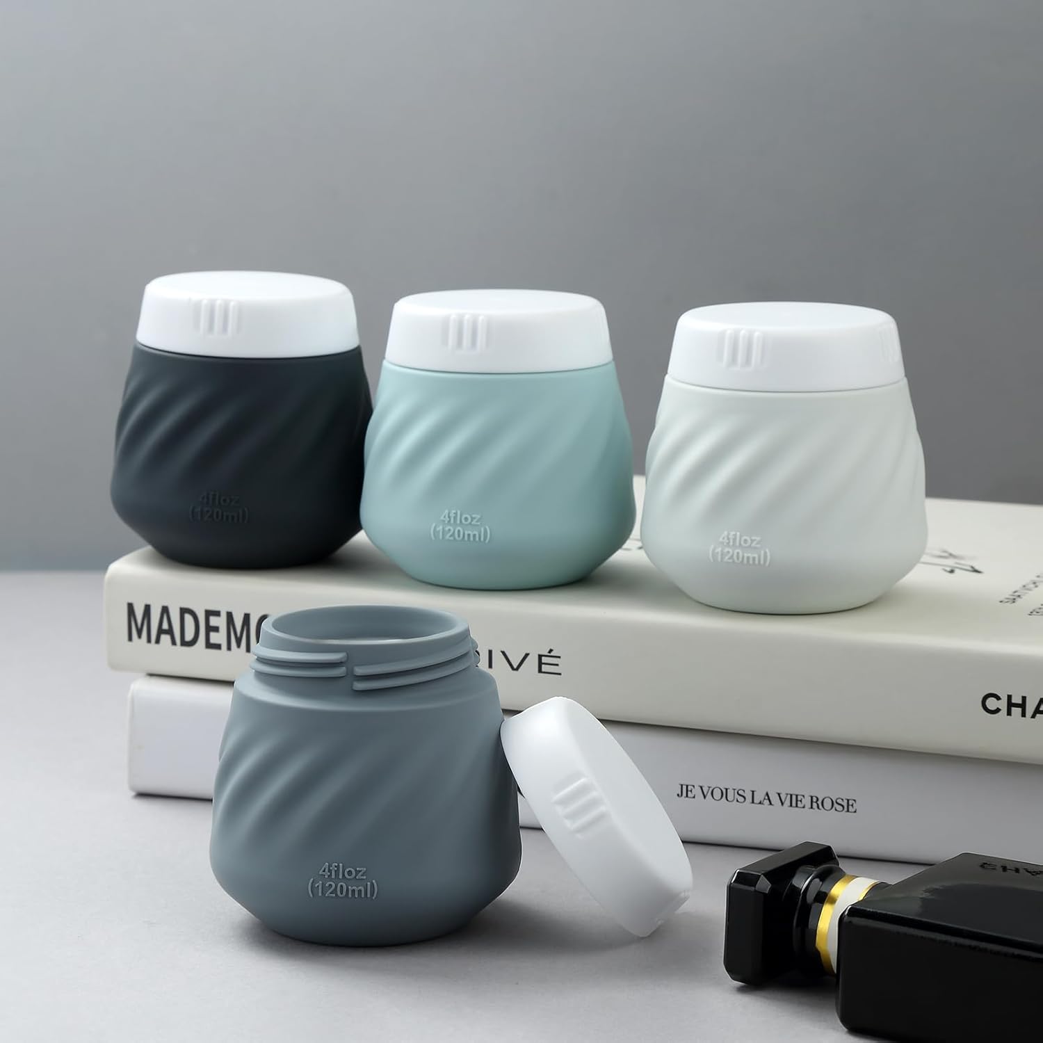 Gemice 4 OZ Travel Size Containers for Toiletries, 4-Pack Leak-Proof Silicone Slime Jars with Lids, BPA Free Small Round Cosmetic Slime Container for Lotion, Cream, Ointments, Travel Essentials