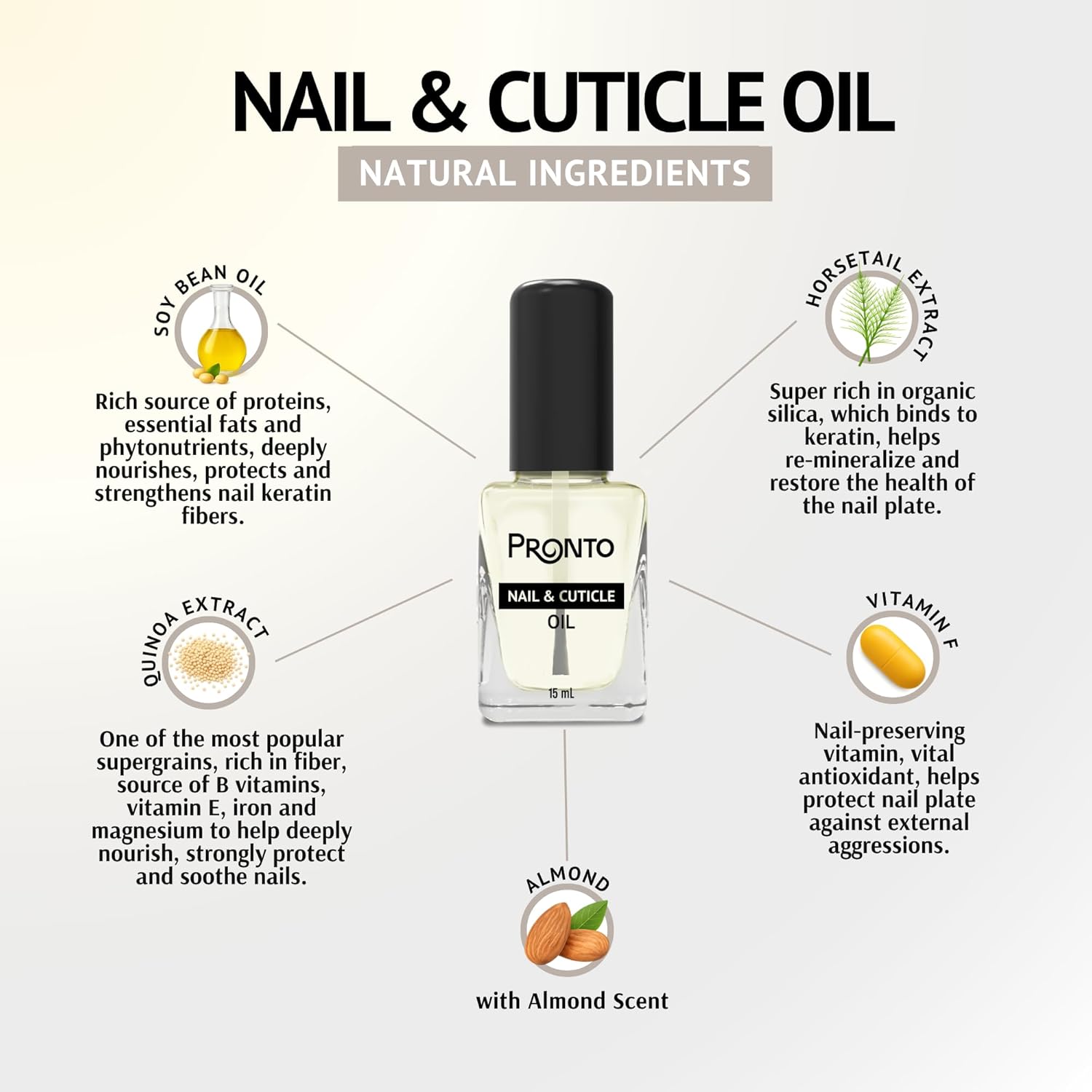 - PREMIUM QUALITY PRODUCT: Our Pronto fingernail polish remover & cuticle drop duo are proudly made in USA, using 100% pure acetone to effectively and efficiently remove all types of manicure and pedicure and cuticle oil to help deeply nourish and protect nails.