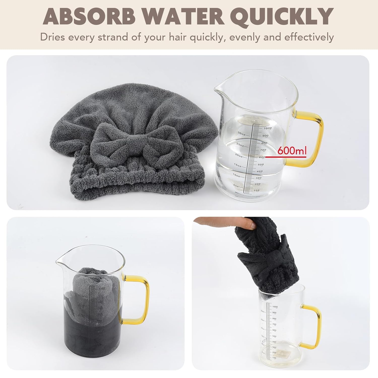 SUNLAND Large Microfiber Hair Drying Caps with Bow knot Fast Drying Shower Cap Soft and Absorbent hairWrap Hair Turban Bath Caps for Curly Thick and wet Hair 11 X 13.4 inch 2 Pack Dgrey