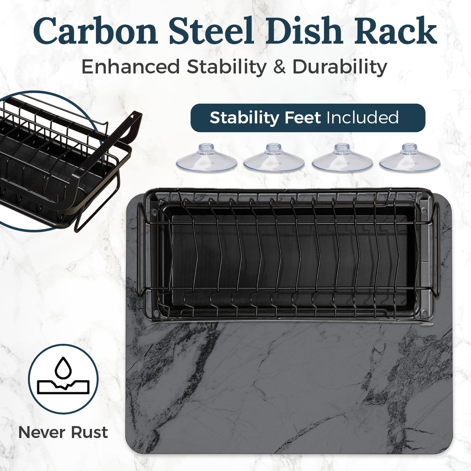 - ππππππ‘π§ & πππ¦π§πππ§ππ Transform your space with AquaTerra's stone drying mat for the kitchen counter and carbon steel rack. The sleek marble-like design offers a modern touch, elevating your countertop decor while ensuring ultimate functionality for busy kitchens.