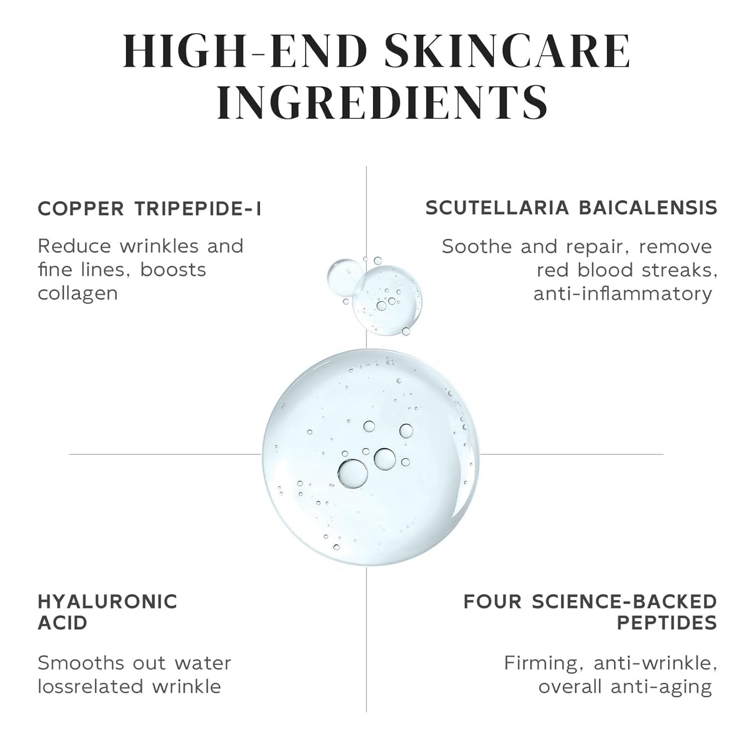 - Comprehensive Nourishment & Repair:Copper Peptides (GHK-Cu) are renowned for their ability to regenerate and repair skin, enhancing the skin barrier and improving overall skin health. Paired with Hyaluronic Acid, it deeply hydrates, locks in moisture, and ensures long-lasting hydration for plump, smooth skin.