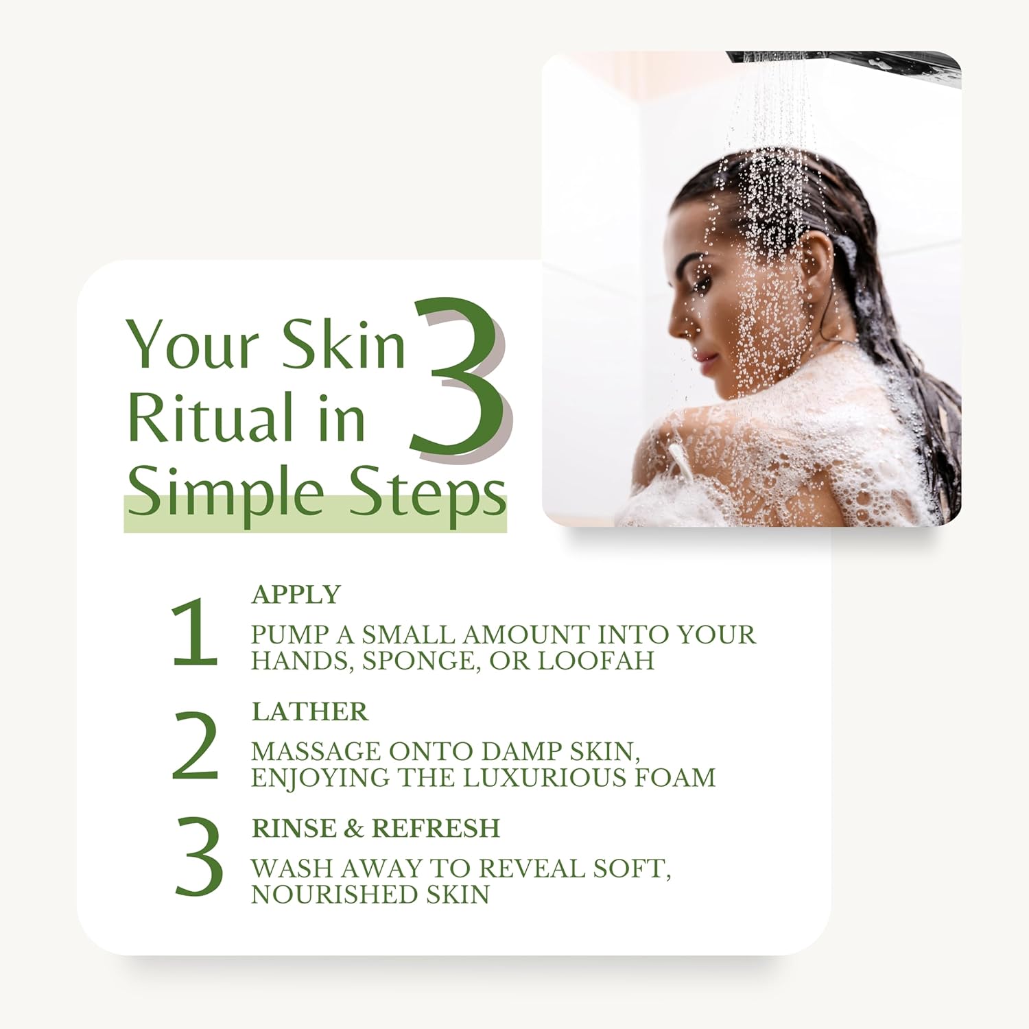 - Sulfate-Free, Gentle & pH Balanced – Crafted with plant-based certified organic ingredients, this body wash is free from sulfates, parabens, and harsh chemicals, making it safe for all skin types, including sensitive skin. It creates a rich lather that rinses clean, keeping your skin refreshed and comfortable after every use.