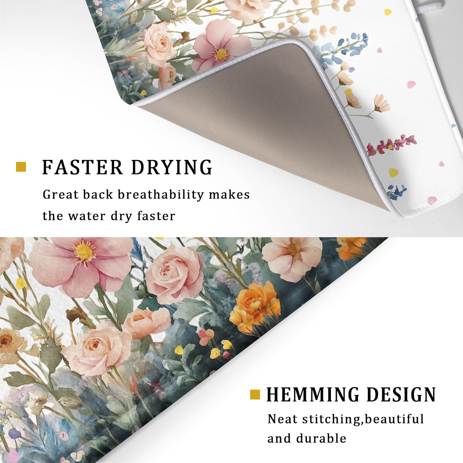 - 【Wide Usage】The dish drying mat designed with colorful petal pattern, it is beautiful, soft, and durable. Not only a dish drying mat, cup mat, heat resistant mat, you can also use it as a kitchen countertop insulation mat. It is also a good choice to use it as a pet mat, picnic mat.