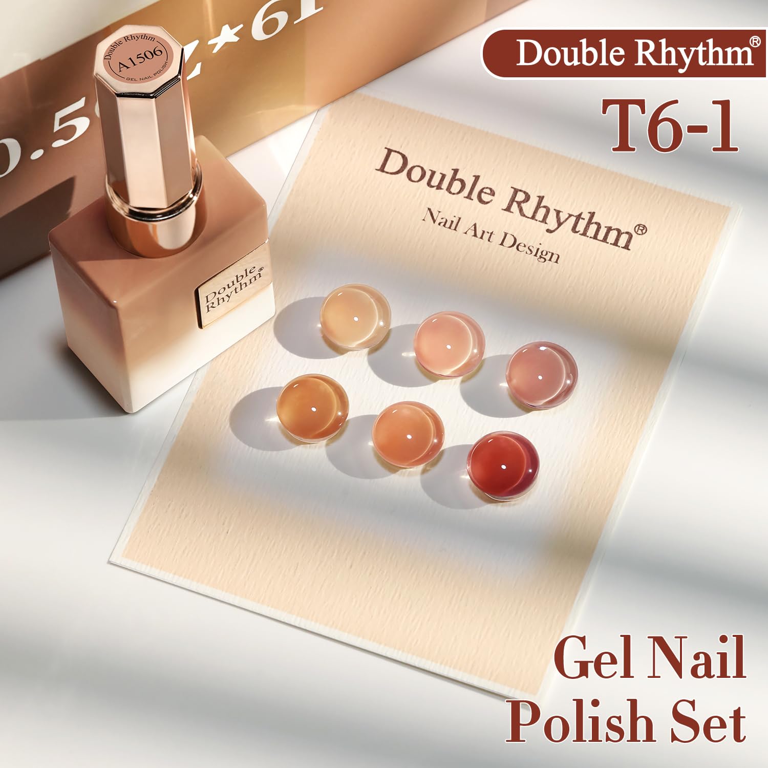 Double Rhythm 6 Pcs 15 ML Gel Polish Set Same Color Same Bottle Soak Off Gel Polish Kit Nail Art Manicure Salon DIY at Home for Women (Translucent Milky Brown Nude Orange Rose Red-T6-1)