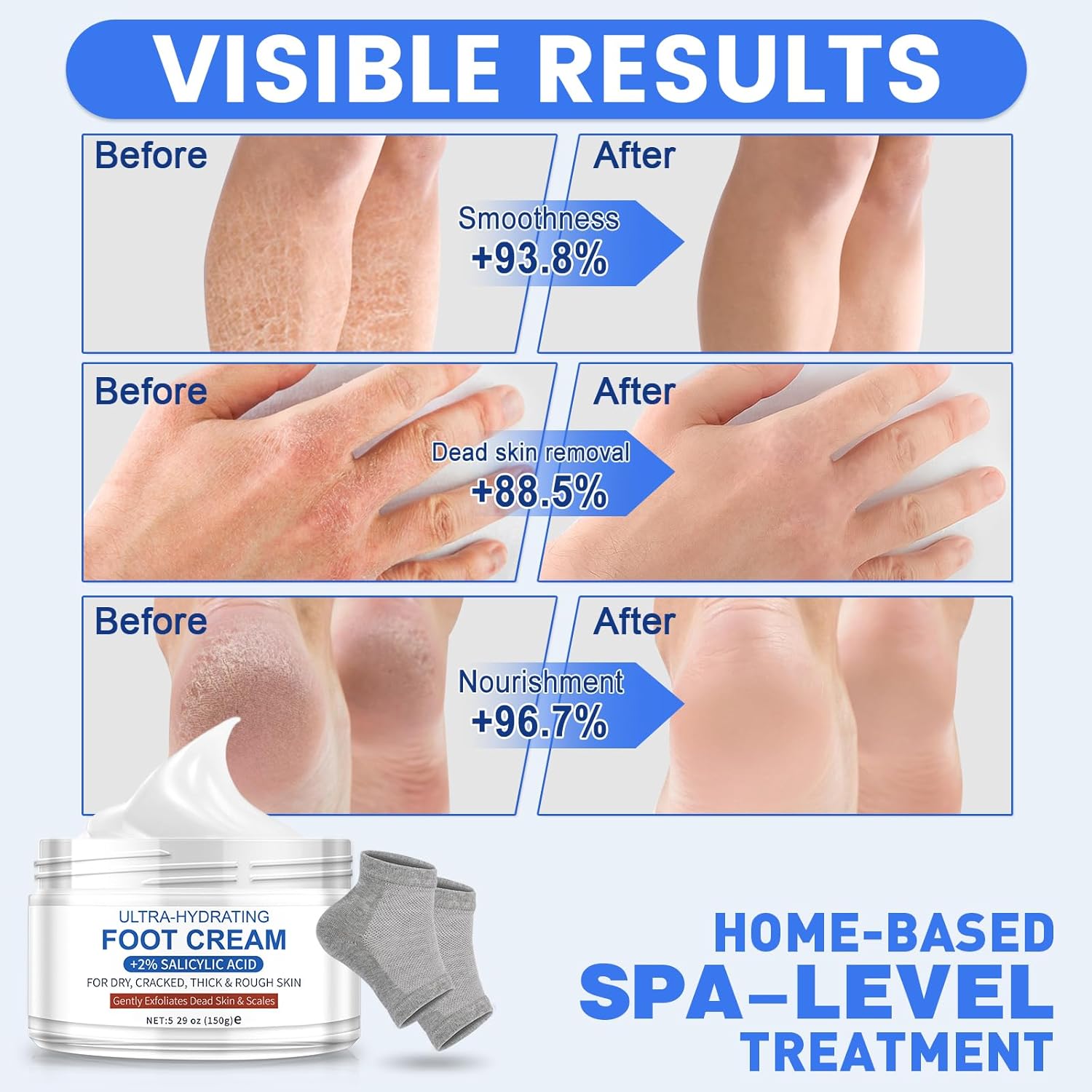 Ultra-Hydrating Urea Cream (Urea Conc. 40.67%), Foot Cream for Dry Cracked Heels and Feet, Pair with Moisturizing Heel Socks for Cracked Heel Treatment, Heel Socks Included (5.29 OZ/150g)