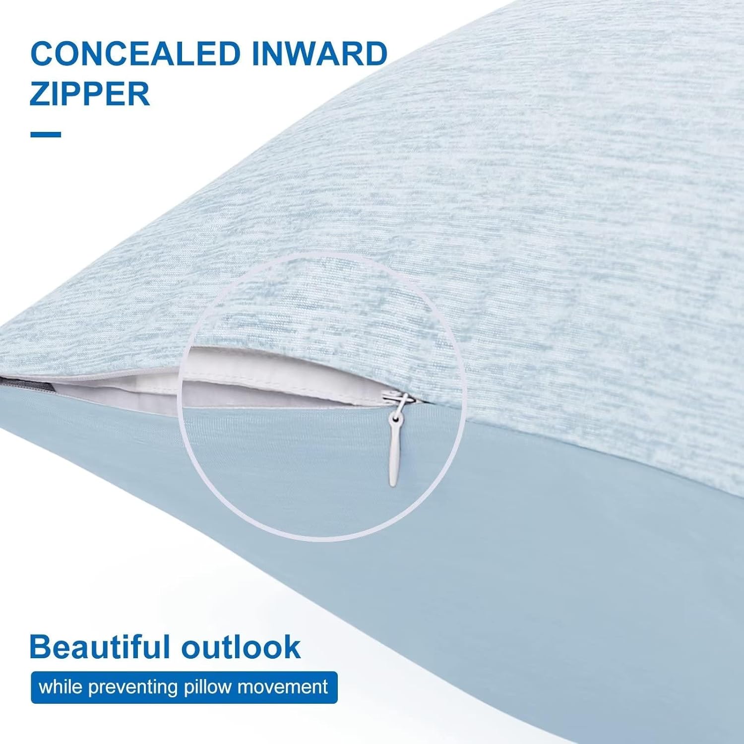 HOMFINE Cooling Pillowcases King Size - Double Side Q-Max 0.439 Cooling Fiber for Pillow Protector, Breathable Cold Pillow Cover for Hot Sleeper Night Sweat, Zipper, 2 Pack (20"x36", Light Blue)