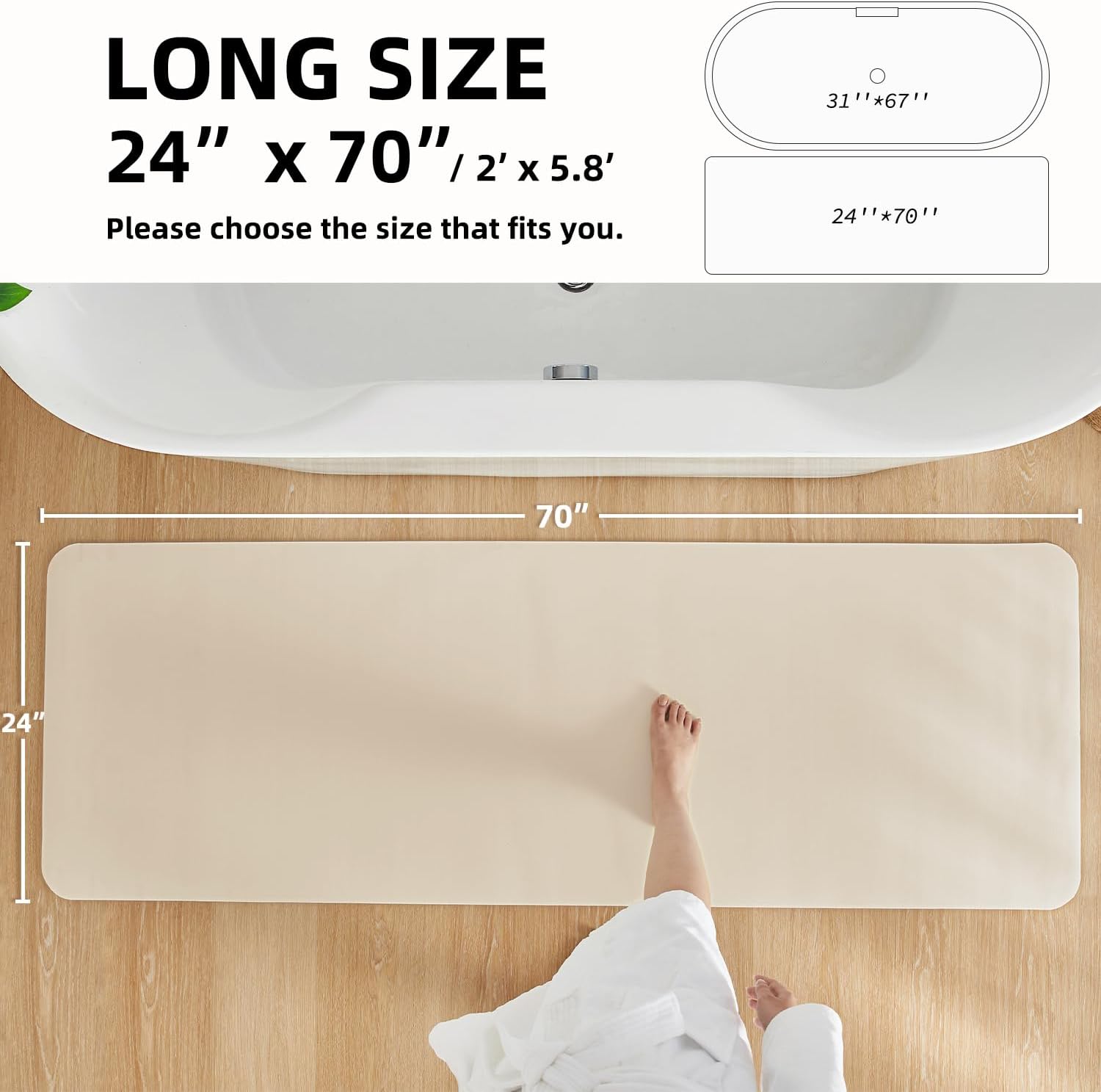 Bathroom Mat Quick Dry, Bathroom Rugs Non Slip Washable Thin Absorbent Bath Mat Fits Under Door Bathroom Floor Mat Perfect for Bath, Shower, or Sink 24"x70" Beige