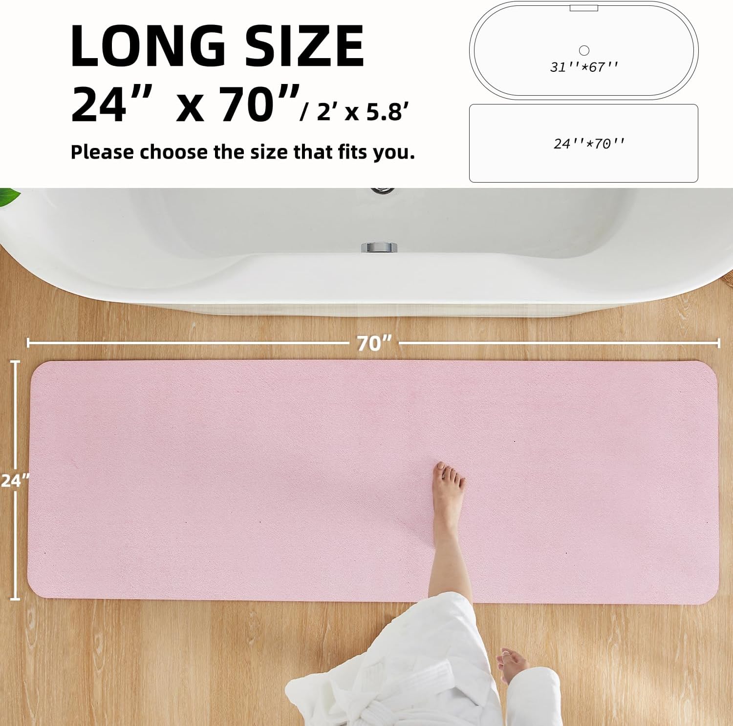 Pink Bath Mat, Bathroom Rugs Non Slip Washable Thin Absorbent Quick Dry Bath Mat Fits Under Door Bathroom Floor Mat Perfect for Bath, Shower, or Sink 24"x70" Pink