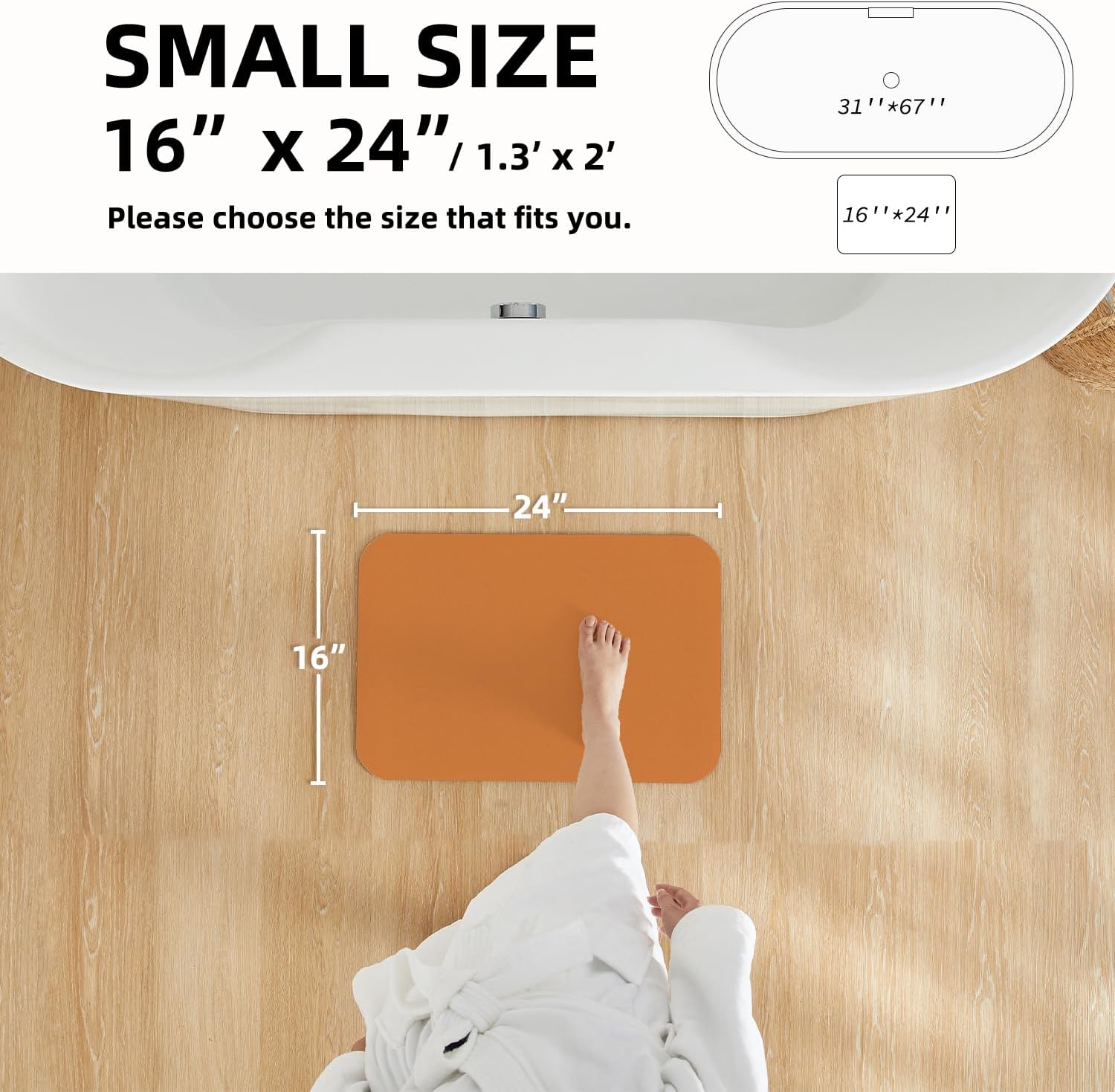 Bathroom Mat Quick Dry, Bathroom Rugs Non Slip Washable Thin Absorbent Bath Mat Fits Under Door Bathroom Floor Mat Perfect for Bath, Shower, or Sink 16"x24" Orange