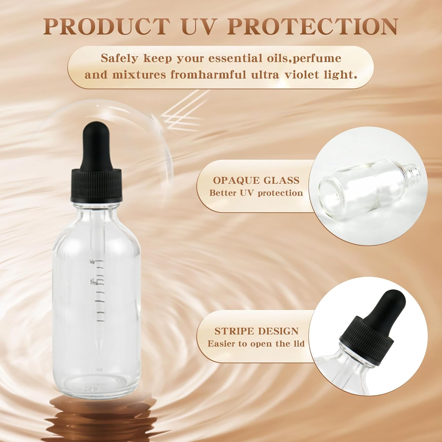 - Value Eye Droppers Set: 24 pack 2oz (60ml) glass eye dropper bottles. Bottles are packaged in grid-shaped partition and thick carton boxes to prevent damage to transport