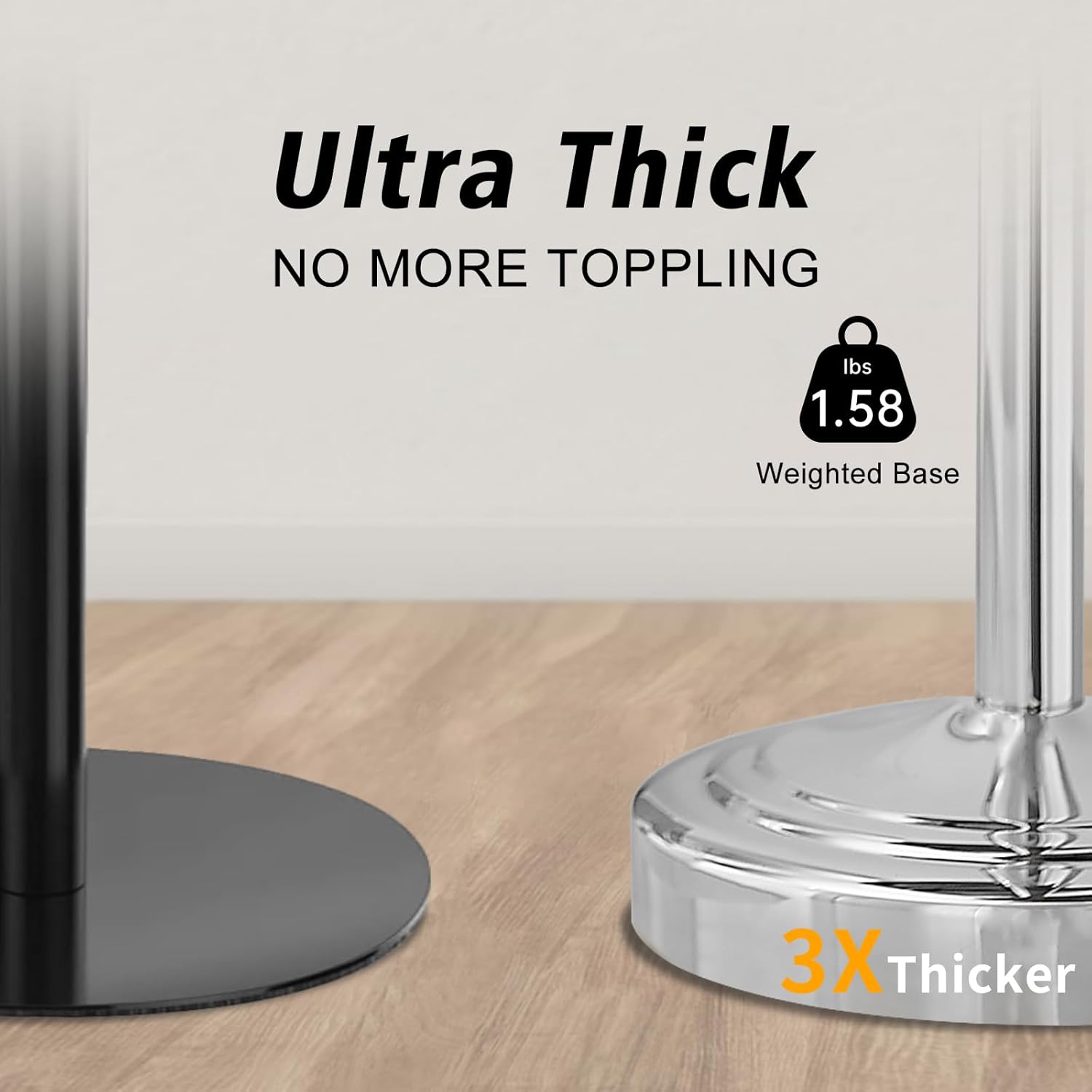 - COUNTERWEIGHT BASE INCLUDED-Decorative bottom helps prevent holder from tipping,Soft foam pad on base protect countertops and surfaces from scratches and marring.