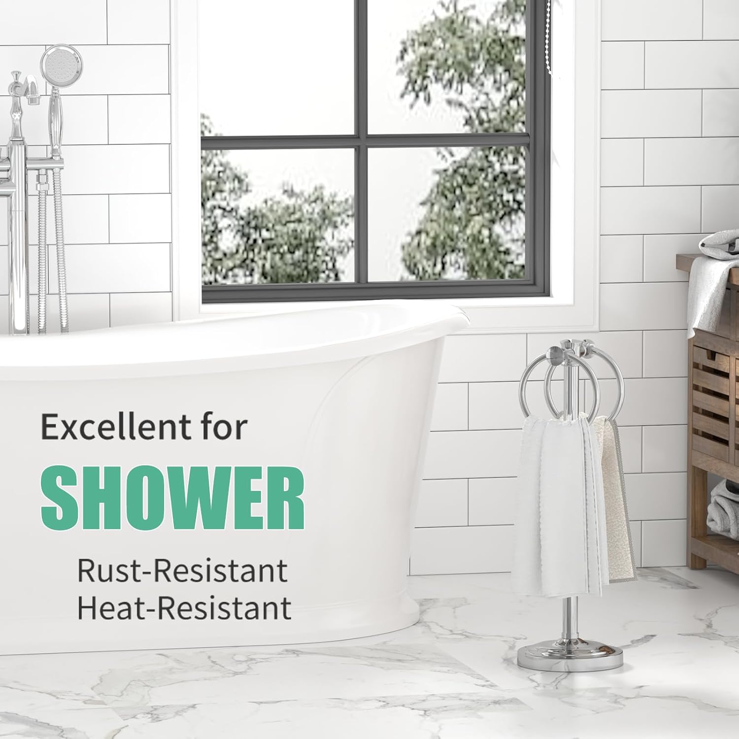 - CONVENIENT STORAGE-Towel holder features two rings for hanging small towels of different thicknesses; Two-sided design lets you hang two matching or coordinating towels; Helps to dry towels quickly.