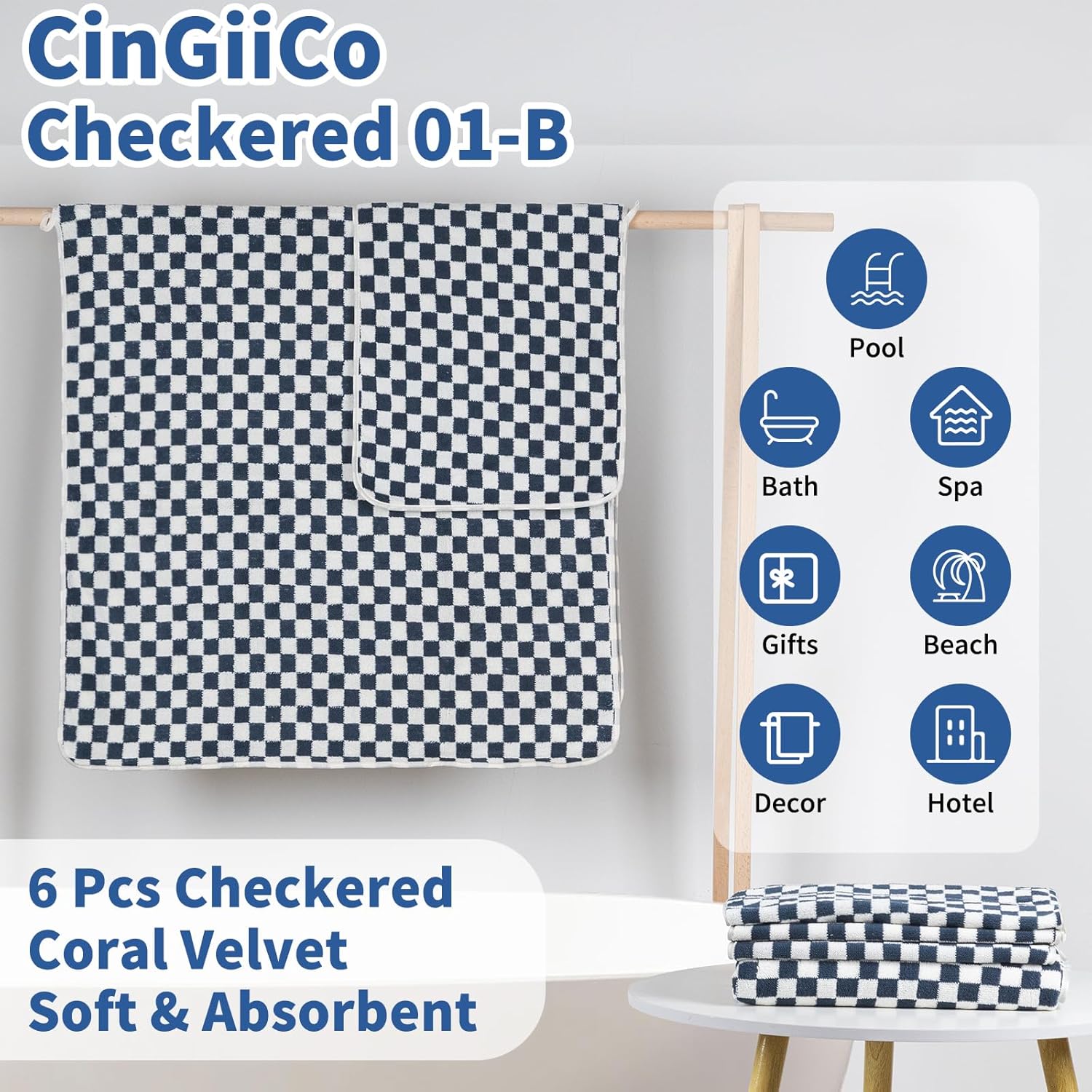 - CinGiiCo Bath Towel Set Includes: Checkered Bath Towels Large * 2 (55.12"*27.56"), Hand towels * 4 (29.52"*13.77"), Blue. Family sharing fun set for life's needs. Soft & Absorbent & Quick-dry
