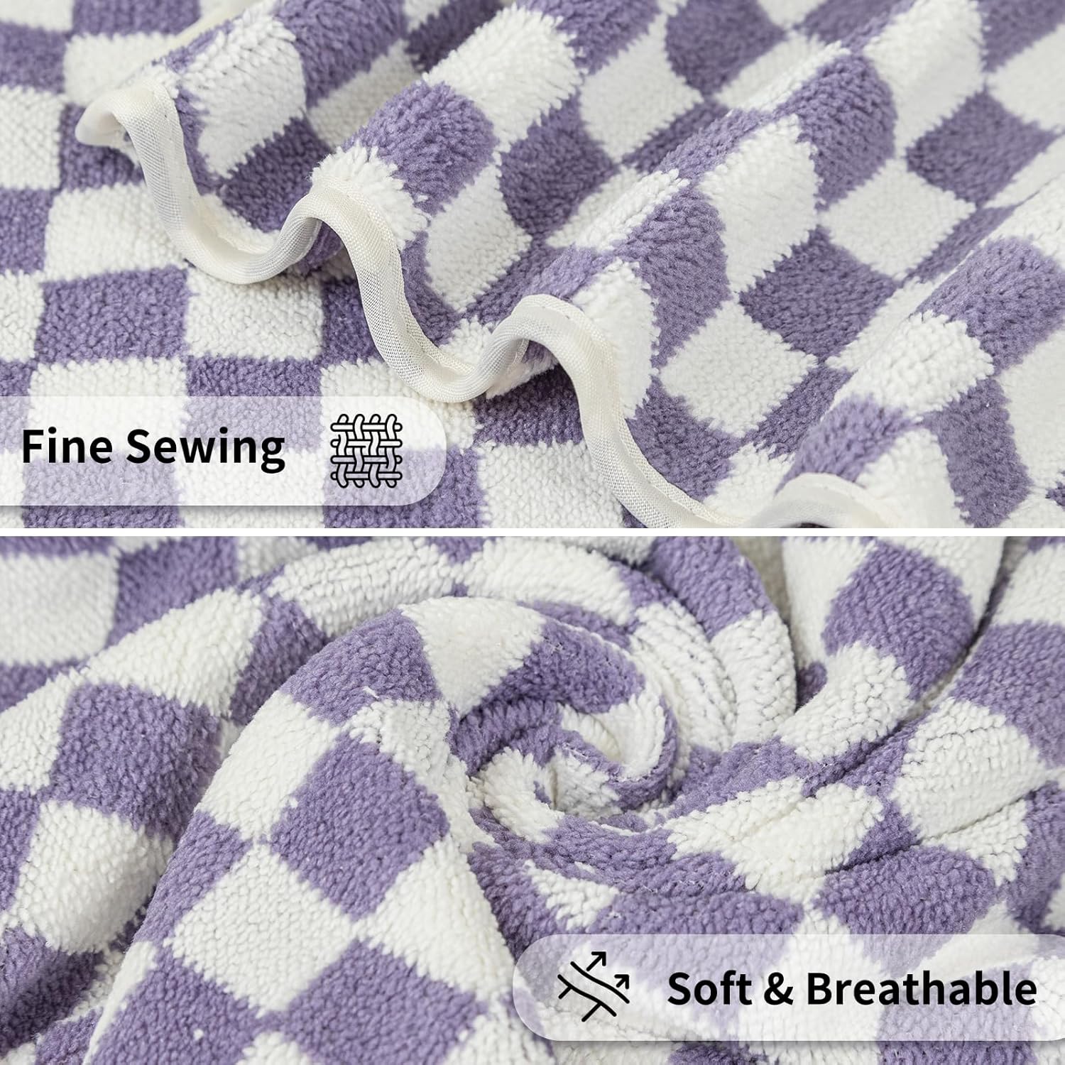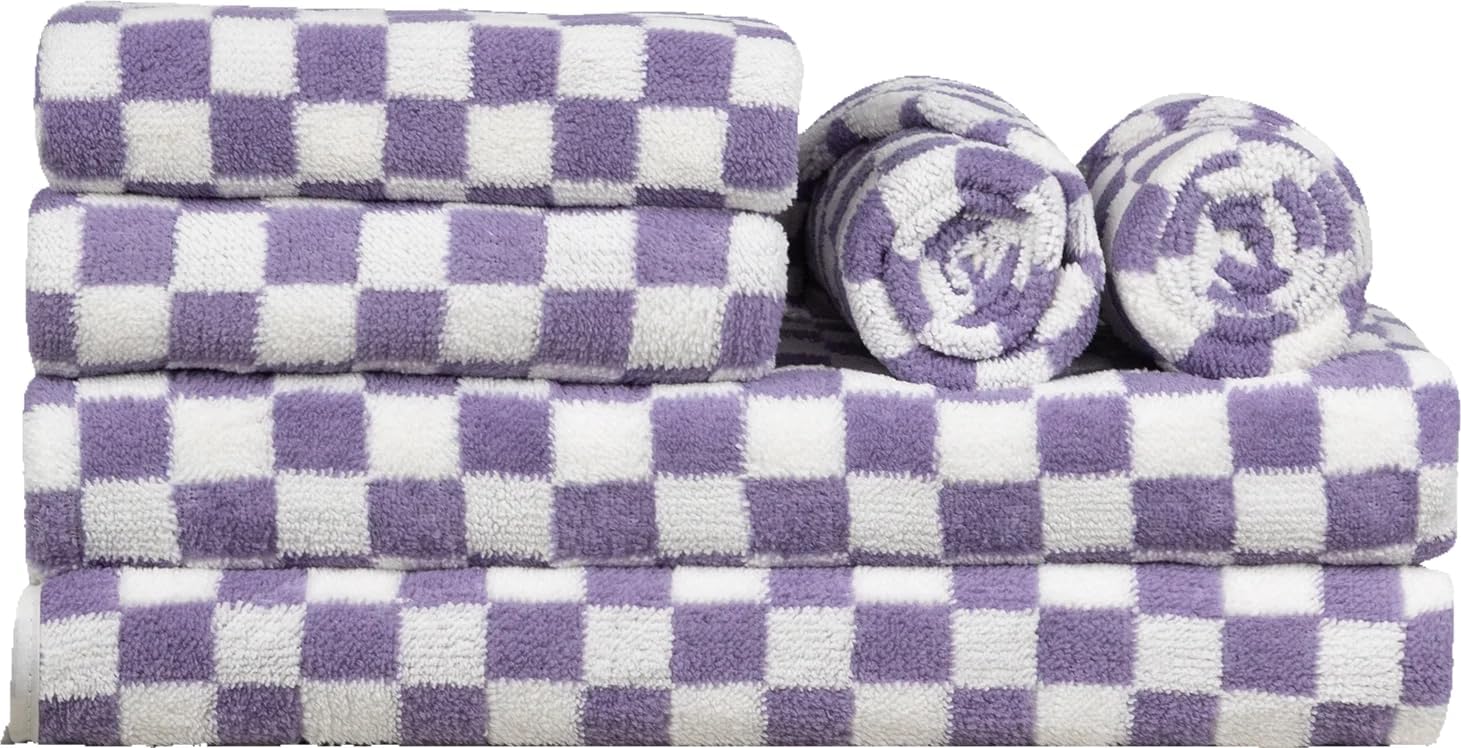 Checkered Bath Towels Set of 6 Large, Microfiber Shower Towels * 2 (55.12"*27.56"), Hand Towels * 4 (29.52"*13.77"),Towels for Bathroom、Pool、Hotel, Spa, Soft Absorbent Quick-Dry(Purple)