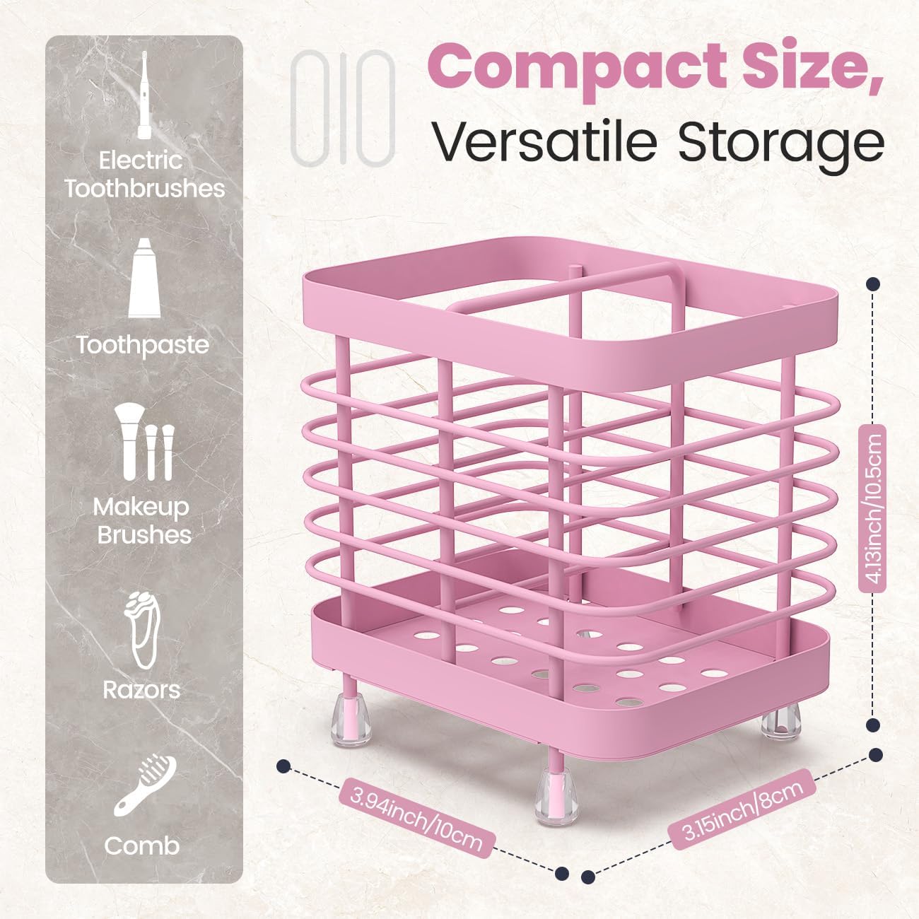 - Compact Size: Size: 3.9*3.15*4.13 inches. You can easily store all your bathroom essentials, such as electric toothbrushes, toothpaste, tongue brushes, and razors in the shower toothbrush holder. The toothbrush holder keeps your countertop tidy without taking up too much space.