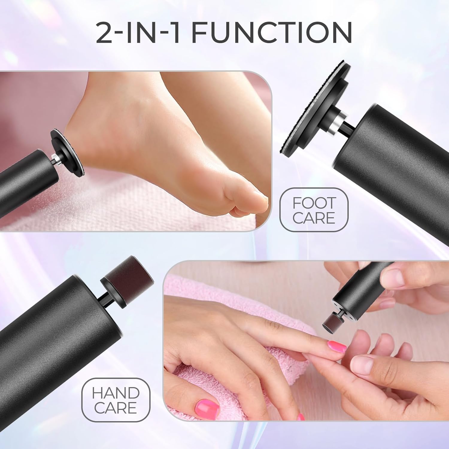 krofaue Electric Callus Remover Kit - USB Rechargeable 2 in 1 Foot Scrubber & Dead Skin Remover - 6 Gears Electric Nail Buffer Set for Daily Care - Black