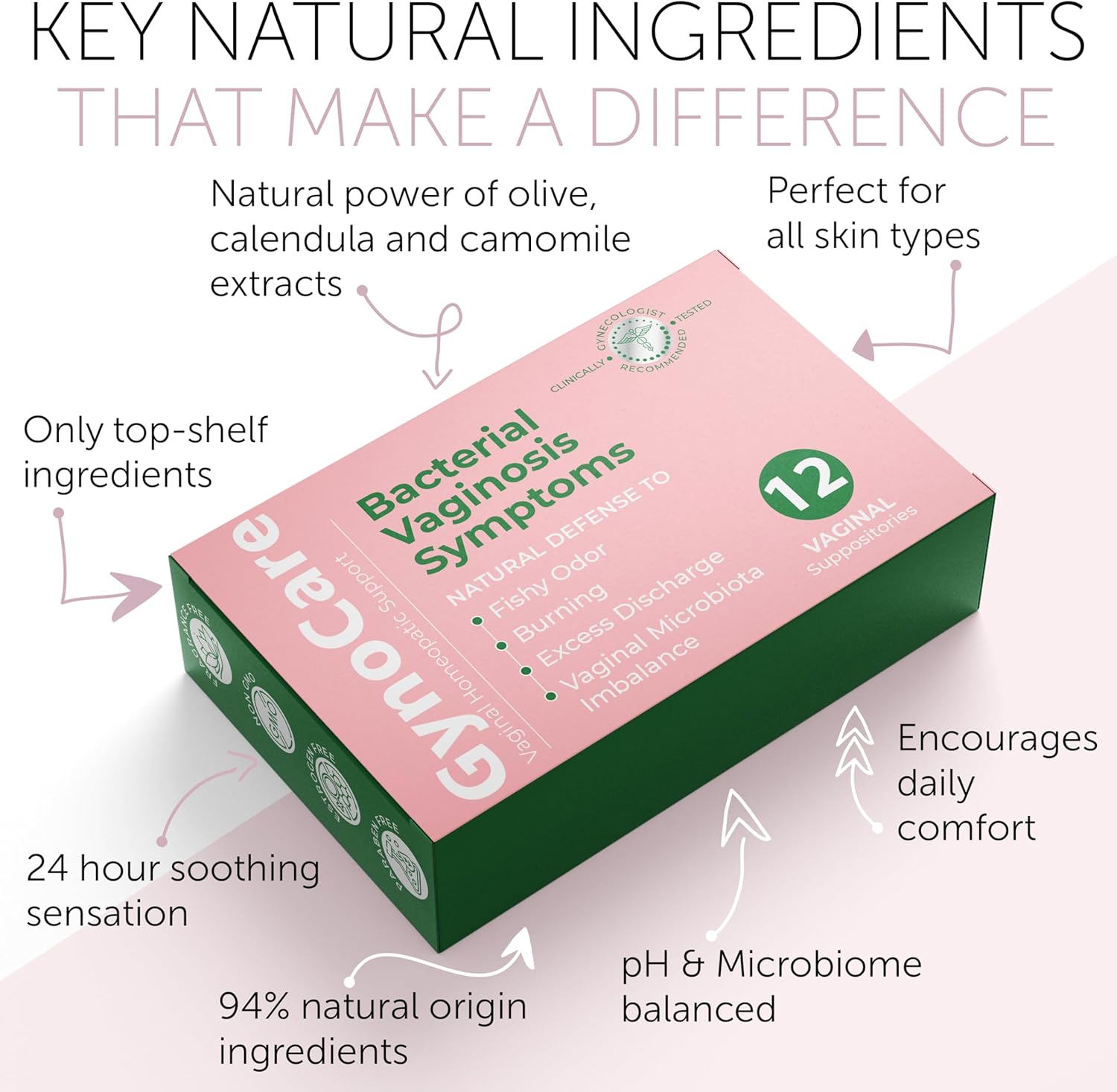 - ππ π ππππππ ππππππ : Bacterial Vaginosis Treatment made easy with our all-natural 12 vaginal suppositories that provide powerful support by addressing vaginal odor, itching, discharge, and discomfort while promoting pH balance and female vaginitis support.