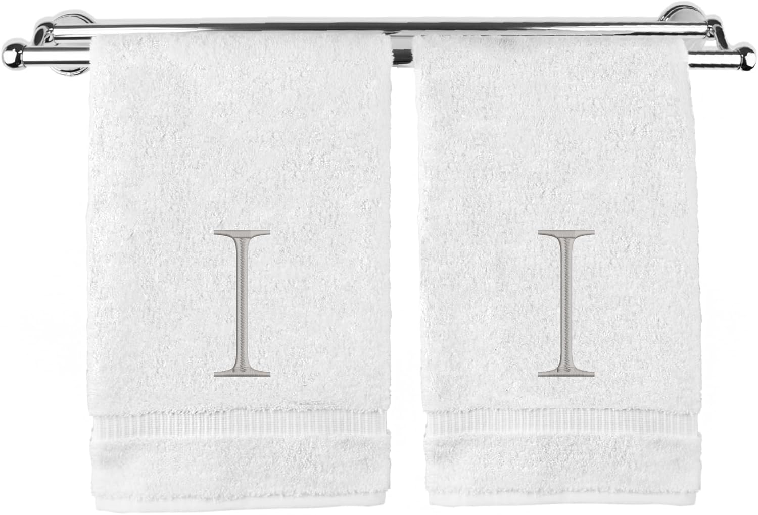 Monogrammed Hand Towel, Personalized Initial Gift, Extra Absorbent 100% Turkish Cotton - Soft Terry Finish - Set of 2 - Silver Block Initial I - Embroidered on White Towels