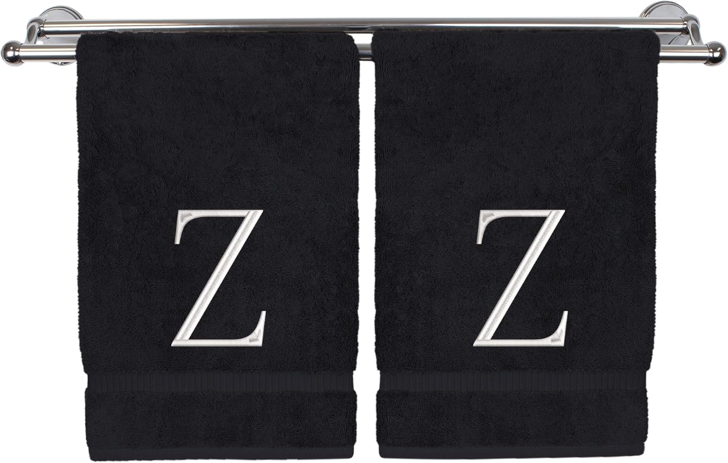 Monogrammed Hand Towel, Personalized Initial Gift, Extra Absorbent 100% Turkish Cotton - Soft Terry Finish - Set of 2 - White Block Initial Z - Embroidered on Black Towels