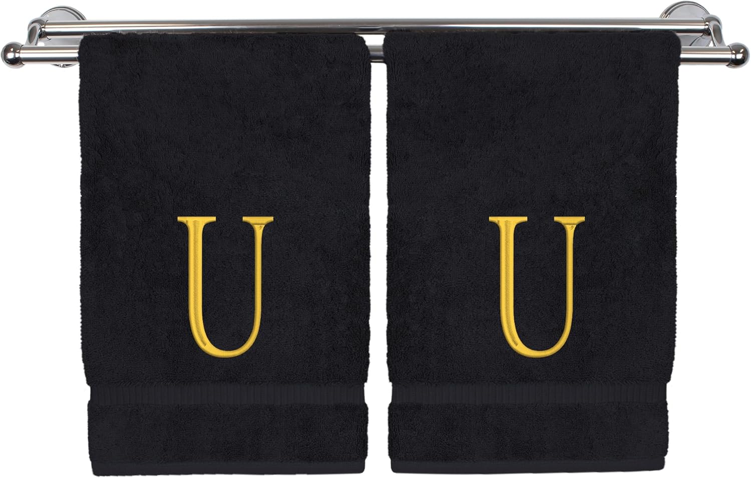 Monogrammed Hand Towel, Personalized Initial Gift, Extra Absorbent 100% Turkish Cotton - Soft Terry Finish - Set of 2 - Gold Block Initial U - Embroidered on Black Towels