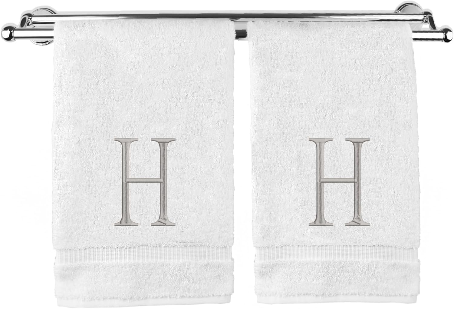 Monogrammed Hand Towel, Personalized Initial Gift, Extra Absorbent 100% Turkish Cotton - Soft Terry Finish - Set of 2 - Silver Block Initial H - Embroidered on White Towels