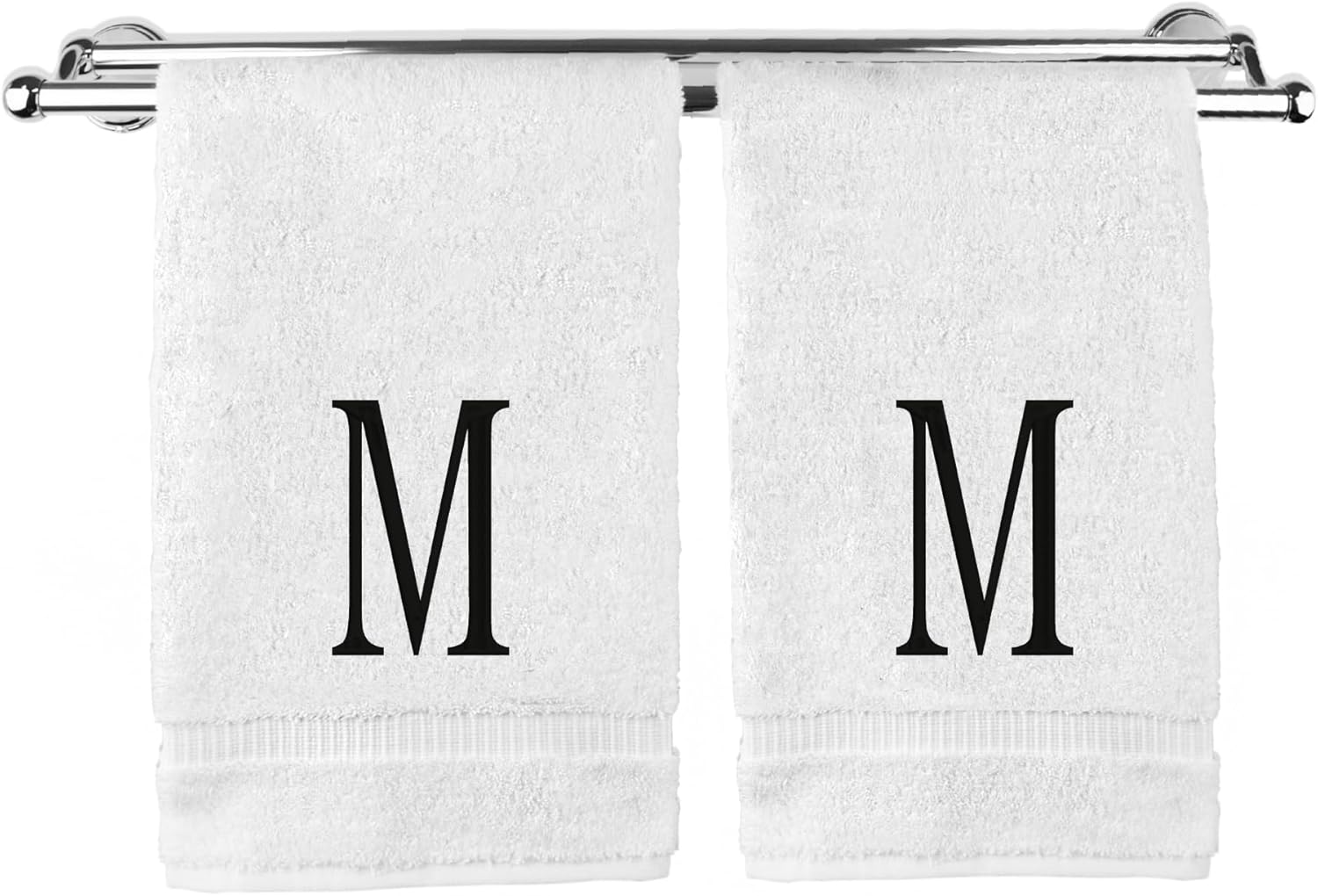 Monogrammed Hand Towel, Personalized Initial Gift, Extra Absorbent 100% Turkish Cotton - Soft Terry Finish - Set of 2 - Black Block Initial M - Embroidered on White Towels