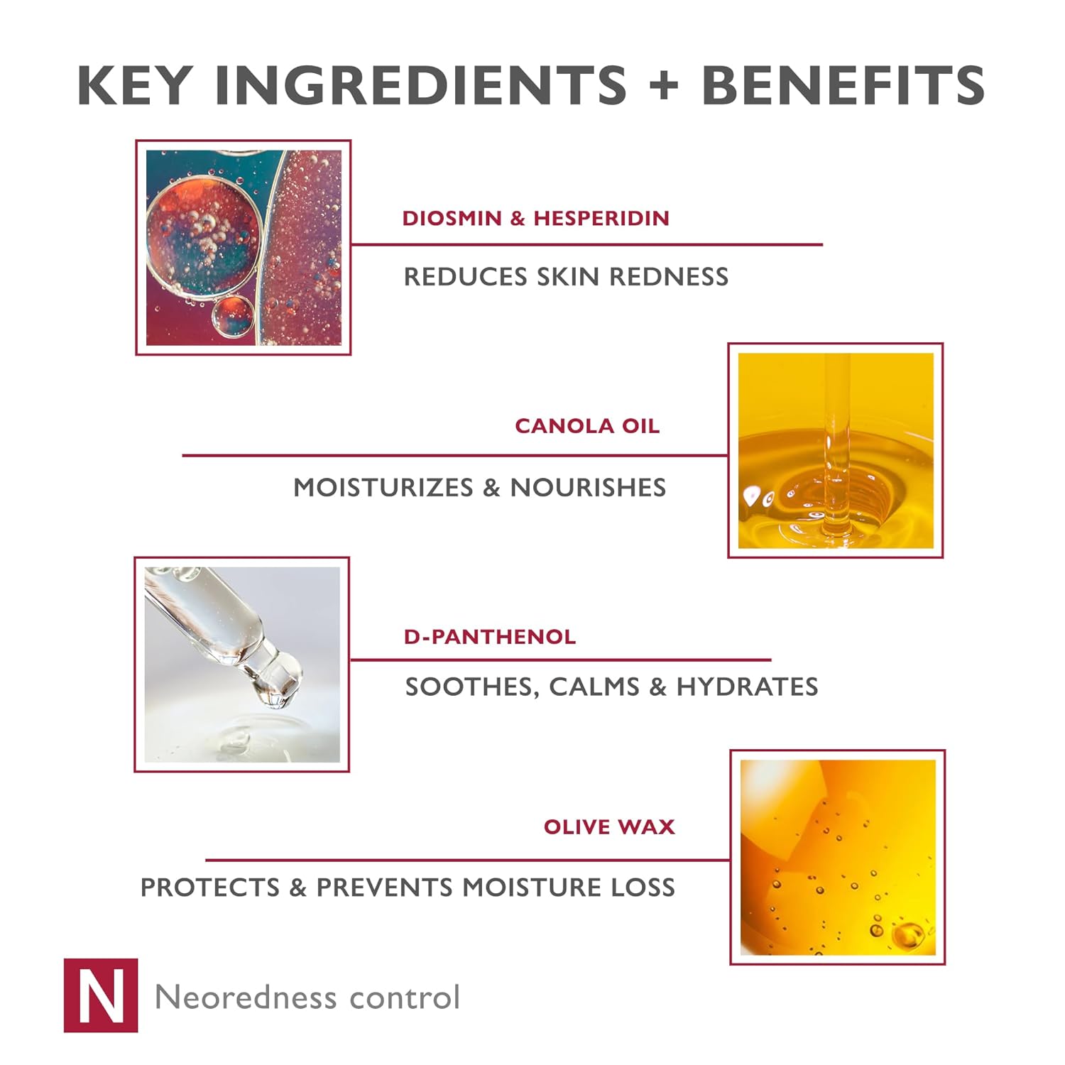- Anti-redness: Intensive dermo cream for sensitive, redness-prone skin; enriched with diosmin, hesperidin, and D-panthenol.