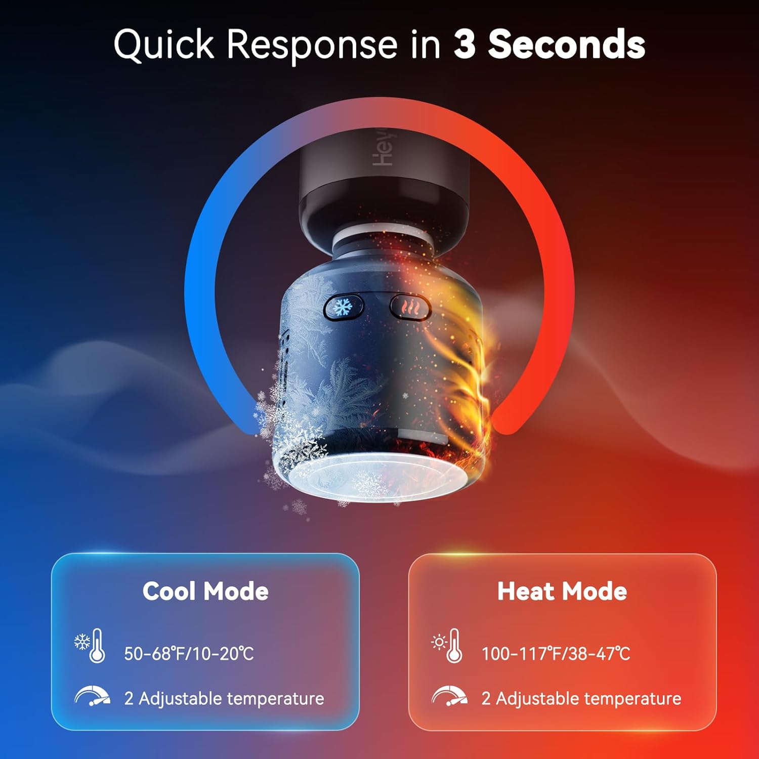 - 【Hot and Cold Therapy】HeyChy massager gun provides 1 heating and cooling massage head that can heat up to 113°F (45°C) or cool down to 50°F(10°C) for deeper muscle relaxation. You could freely choose 5 speeds and 4 attachments depending on the levels of your muscle soreness or pain by pressing the power button.