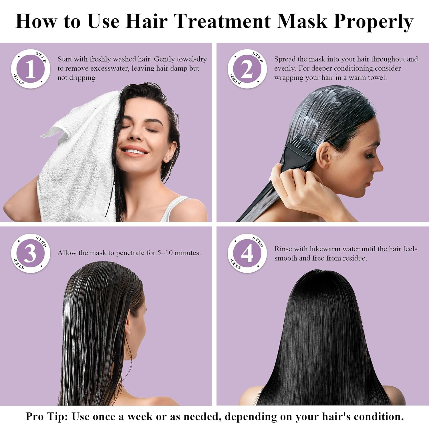 - SALON-QUALITY RESULTS AT HOME | Lightweight, Non-Greasy, Easy to Use | Apply to damp, towel-dried hair | Leave on for 5-10 minutes for optimal results | Use weekly or as needed for lasting nourishment and toning effects