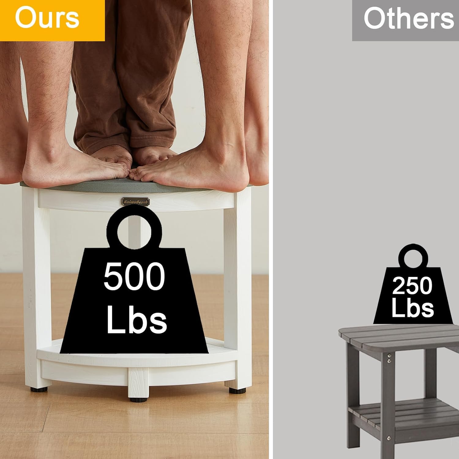 - ăWaterproof & Adjustable FeetăOur bathroom bench is waterproof, it adds 4 adjustable rubber feets which can protect your floor to scratch.