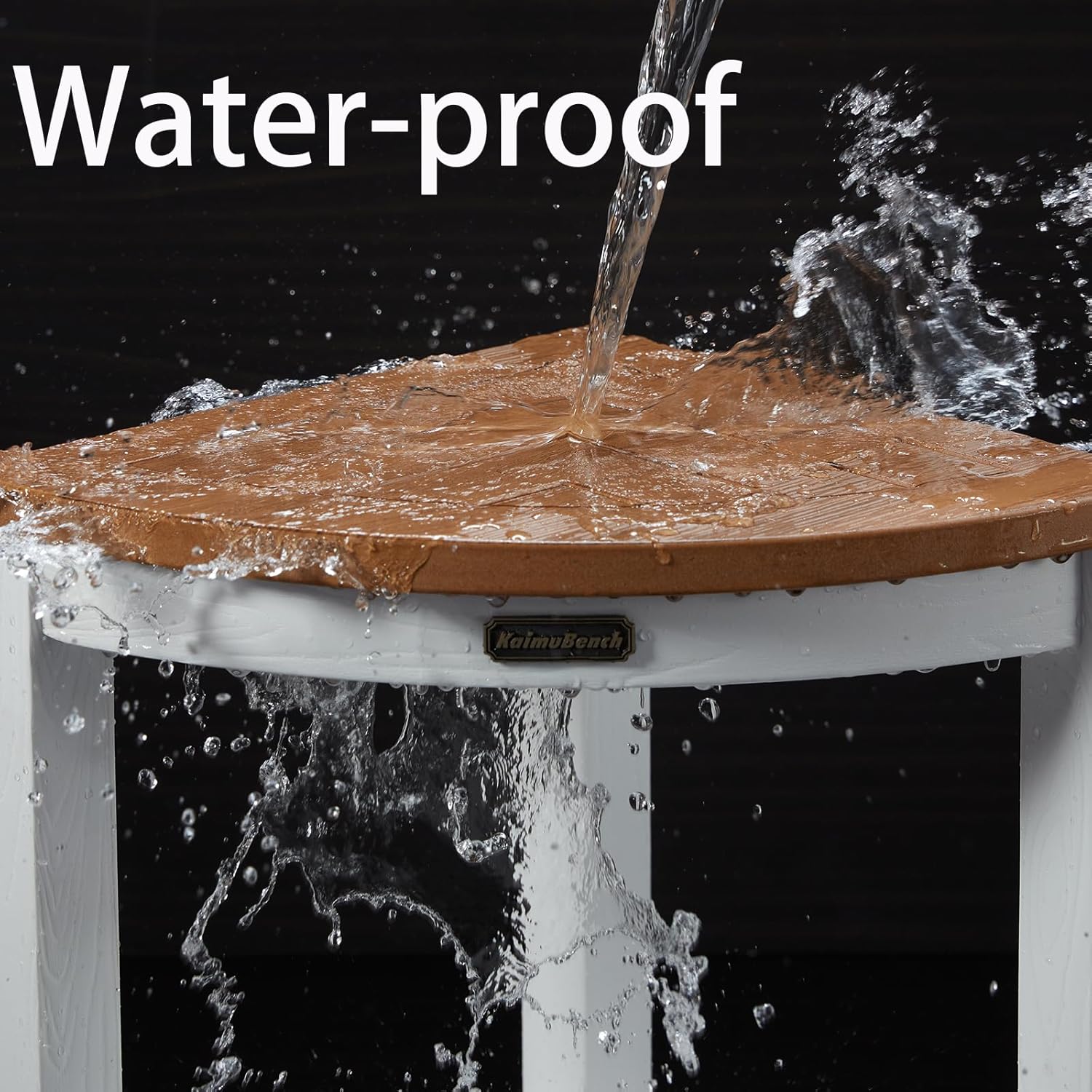 HDPS Corner Shower Stool for Shaving Leg, Waterproof Shower Bench Seat for Inside Shower, Poly Lumber Plastic Bath Shower Chair Seat, White+Brown, Weight Capacity 500LBS