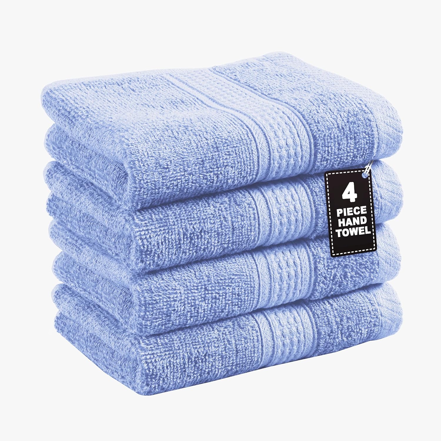 LANE LINEN 100% Cotton Hand Towels for Bathroom Set of 4 (16"x28") - Spa & Hotel Quality - Ring Spun - Quick Dry, Soft & Absorbent Bath Hand Towel 4 Pack - Suitable for All Skin Types - Cerulean Blue