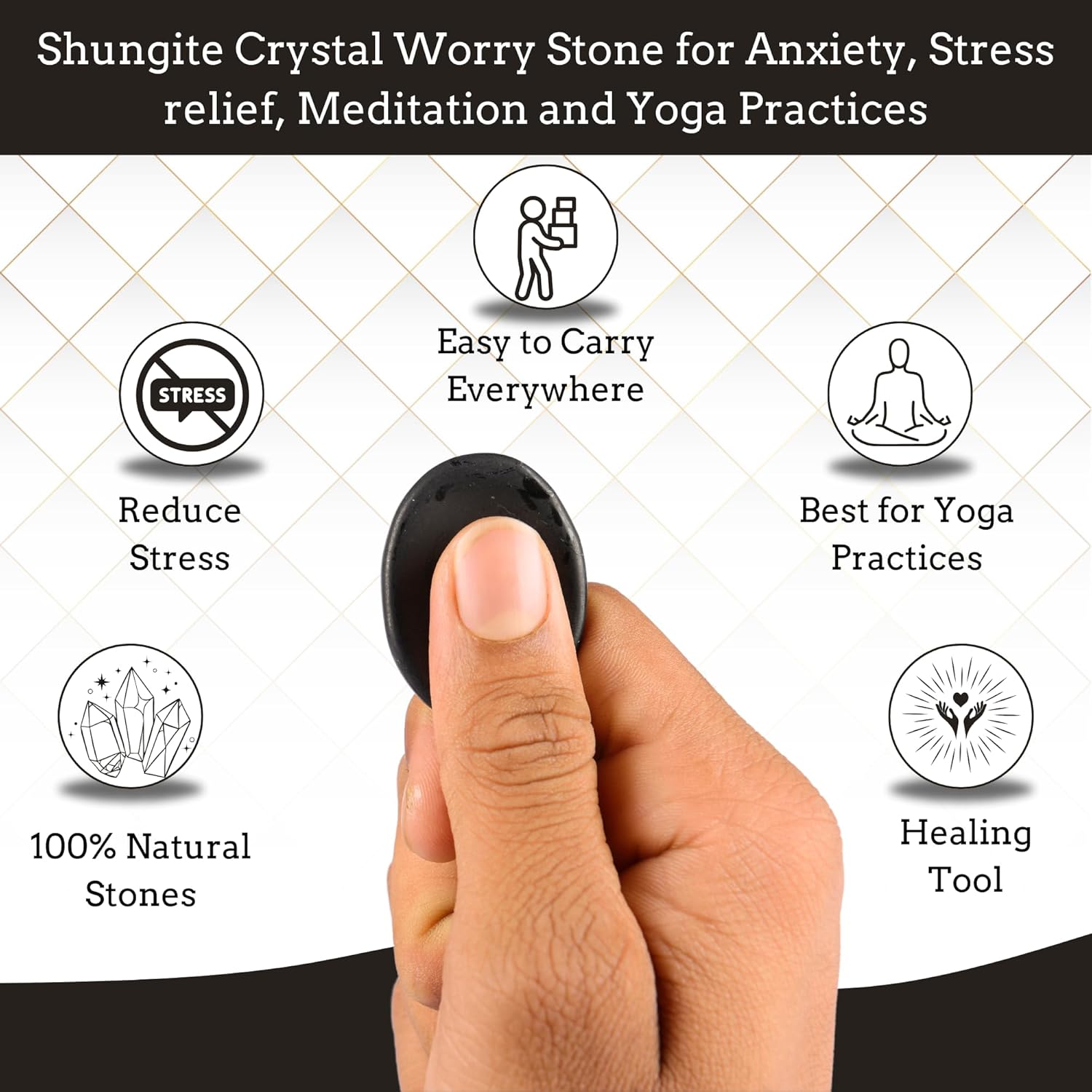 Shungite Worry Stones – Crystal Thumb Worry Stone for Anguish, Stress – Relaxing & Soothing Balance Stones for Meditation, Stress Relief – Healing Stones & Crystals for Men, Women