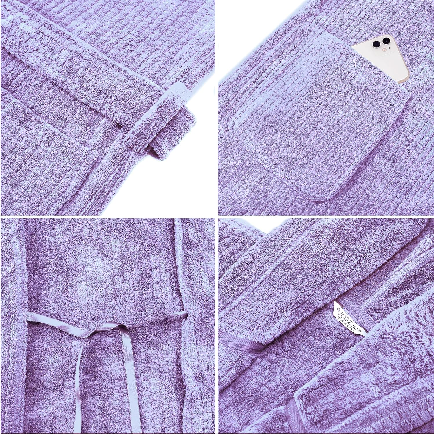- HOODED BATHROBES WITH POCKETS: The hood is perfect for keeping the head warm during the chilly mornings. Slip front pockets are perfect for storing all your stuff with convenience, or just for keeping your hands warm in this bathrobe