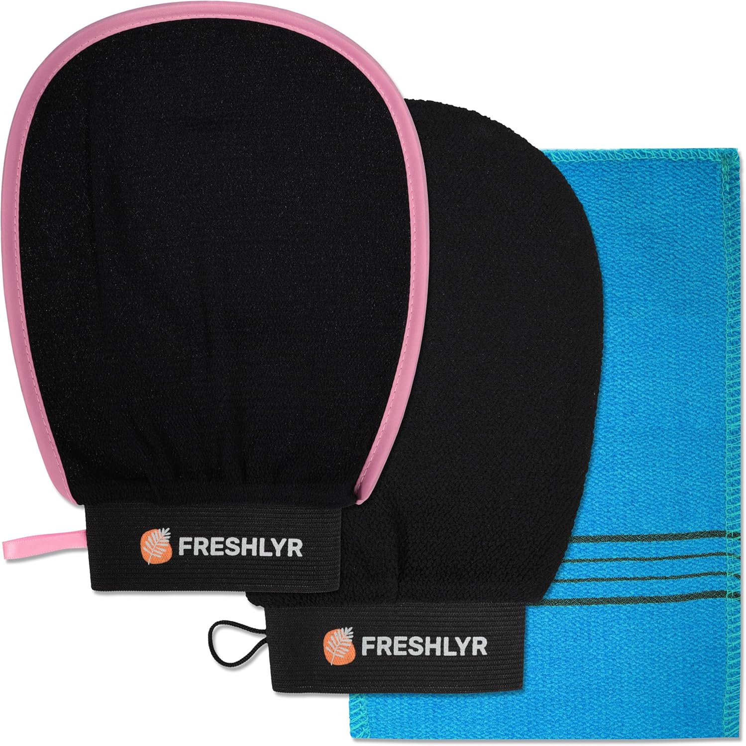 - Achieve Smoother, Healthier Skin with FRESHLYR - Our Premium Exfoliating Glove offers a Korean spa-inspired exfoliation experience that reveals soft, glowing skin. For those looking to improve skin texture and remove dead skin, using our Deep Exfoliating Gloves 2–4 times a month during your shower will help you maintain smoother, more radiant skin while effectively removing built-up impurities.