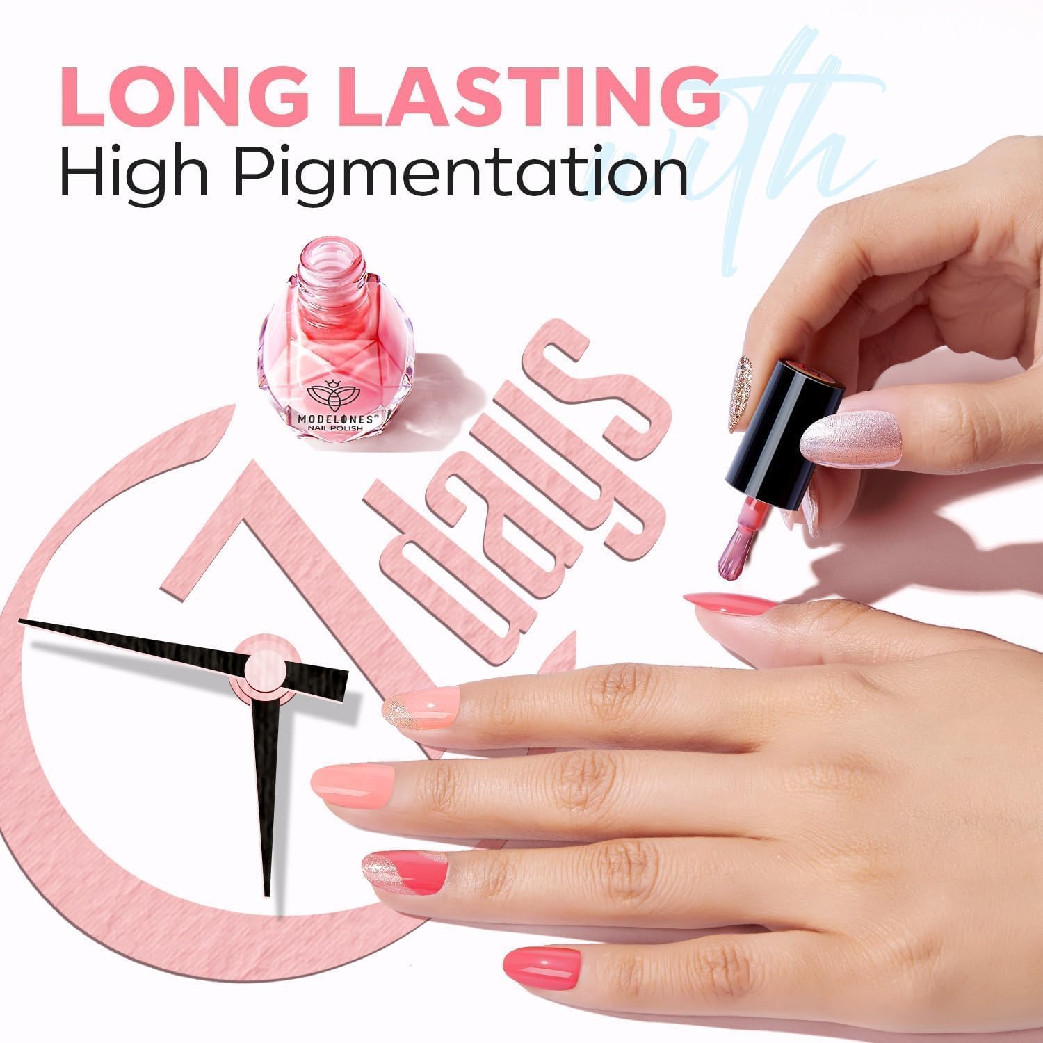 - Long-Lasting Durability: Say goodbye to frequent touch-ups! Modelones nail polish is crafted for longevity, ensuring a chip-resistant finish that lasts. Whether you're typing away at work, doing household chores, or enjoying outdoor activities, our durable formula keeps your nails looking immaculate for days