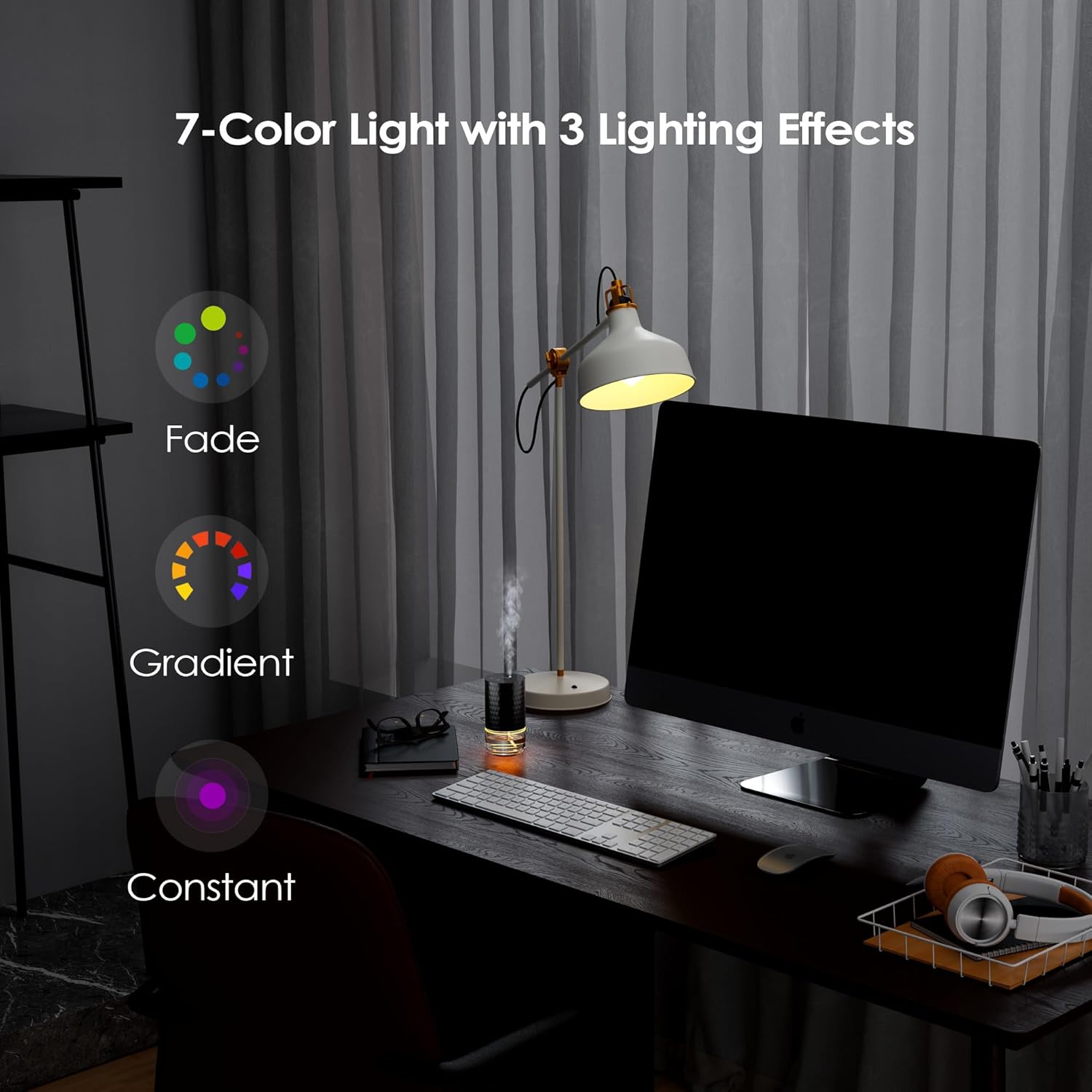 - LED Ambient Lighting With 3 'Effect' Modes [Breathing/Flowing/Constant]. Press and hold the light button to turn on the ambient light; tap to rotate through the 3 different effect modes utilizing 7 colors. When the battery is low, the LED flashes red to indicate recharging required