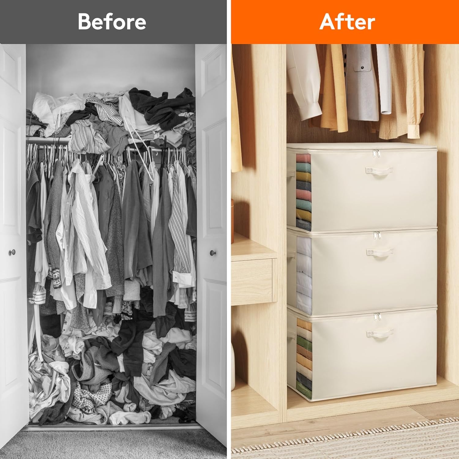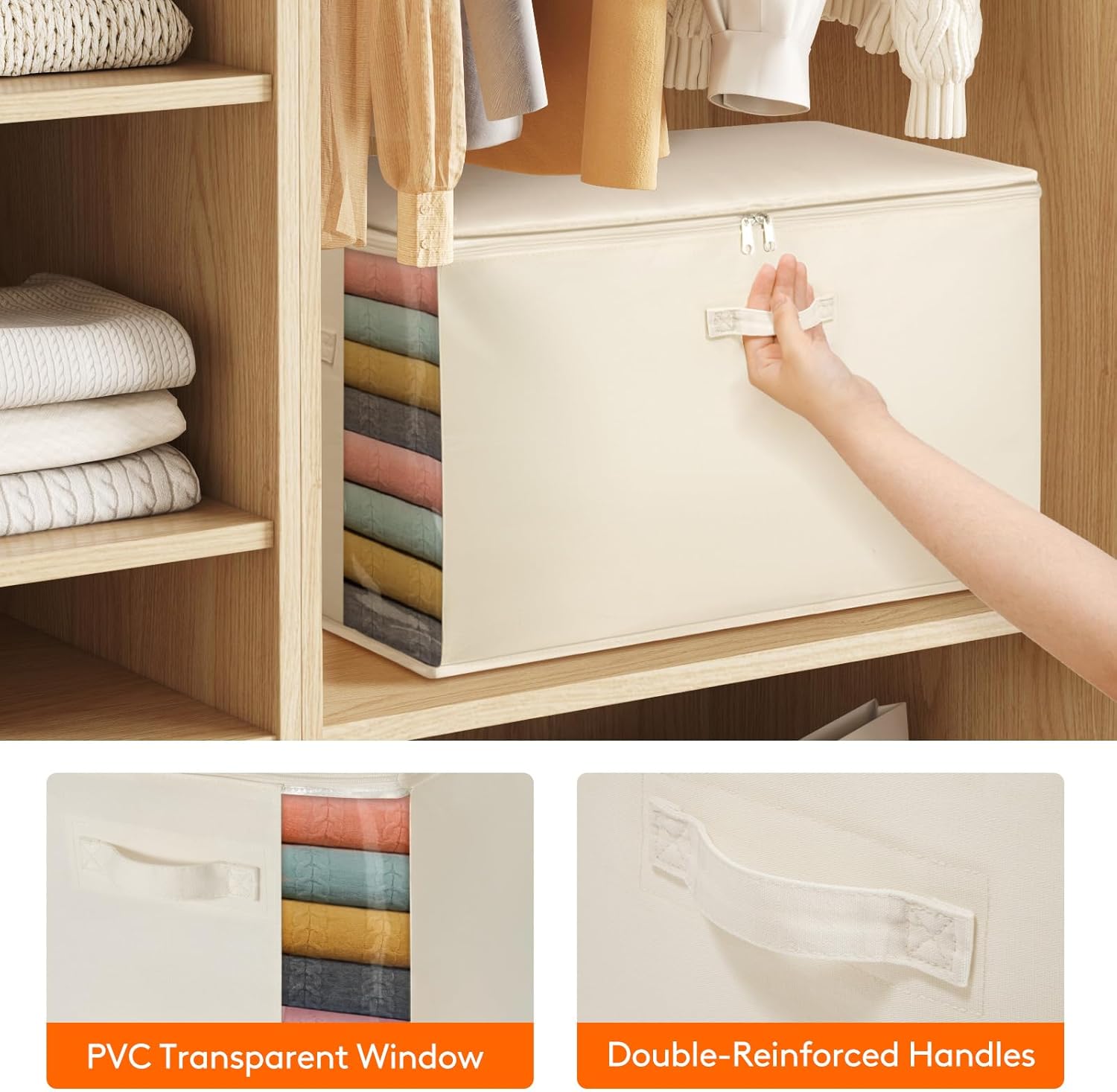 - Sturdy Handles: The clothing storage features three handles, one on the front and two on the sides, allowing for easy handling and removal from any direction. Designed for strength, the double-reinforced handles offer excellent load-bearing capacity