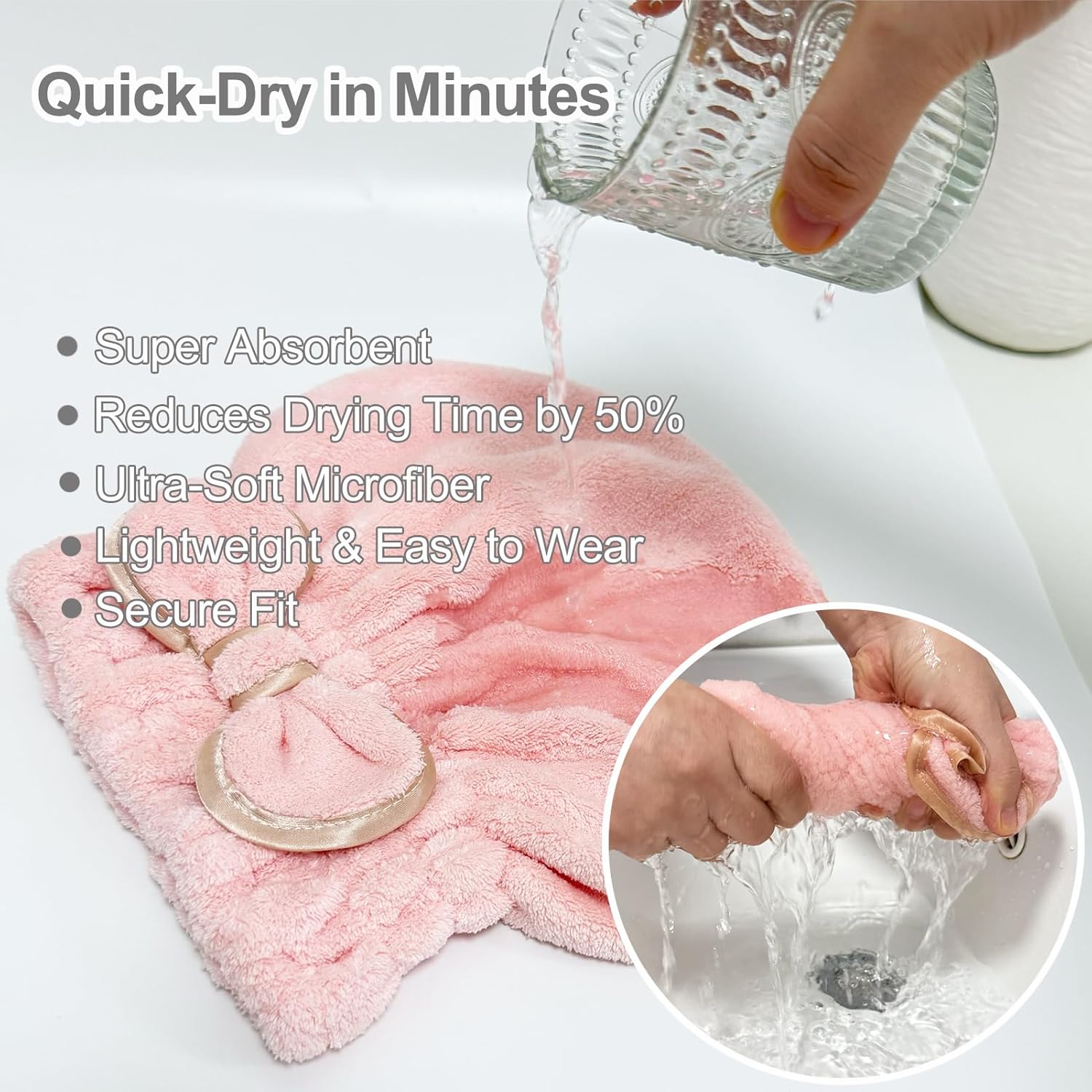 - Cute Bow Design & Secure Fit - Each hair towel features an adorable bow detail and elastic band, ensuring a secure fit without slipping. A stylish addition to your hair care routine, these towels suit all hair lengths and types.