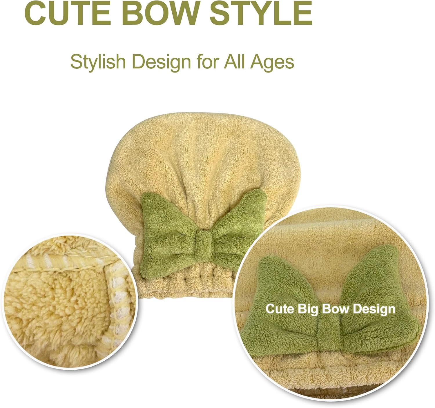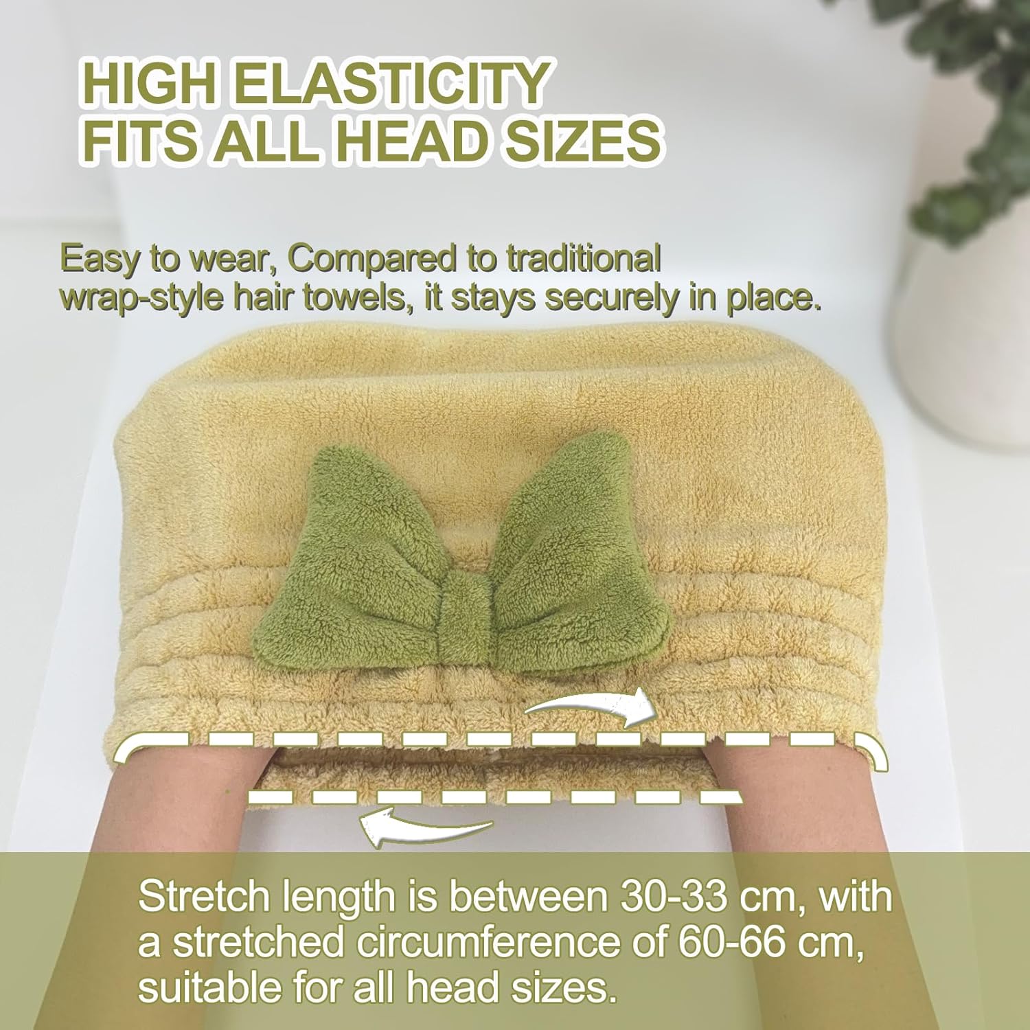 - Cute Bow Design & Secure Fit - Each hair towel features an adorable bow detail and elastic band, ensuring a secure fit without slipping. A stylish addition to your hair care routine, these towels suit all hair lengths and types.