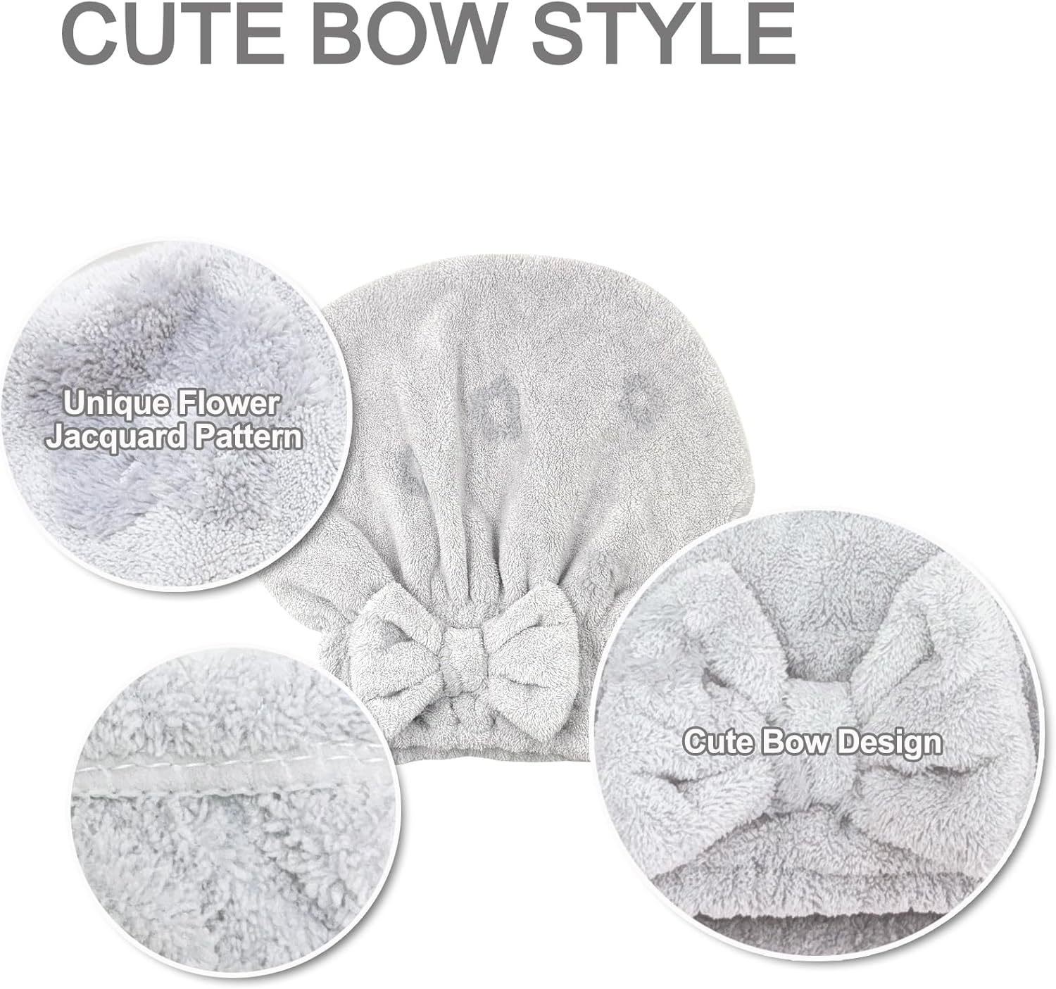- Cute Bow Design & Secure Fit - Each hair towel features an adorable bow detail and elastic band, ensuring a secure fit without slipping. A stylish addition to your hair care routine, these towels suit all hair lengths and types.