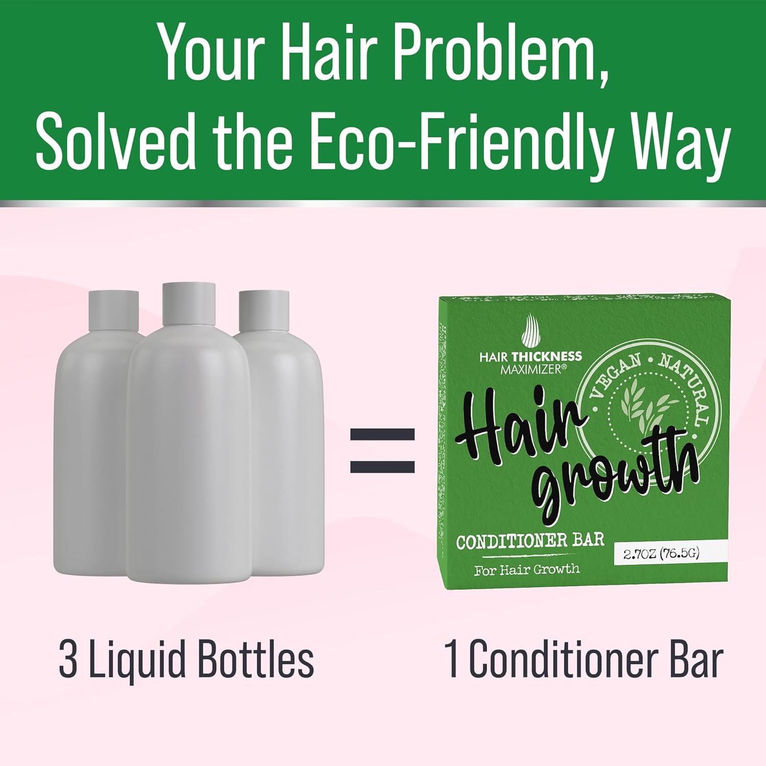 Conditioner Bar for Hair Growth. Eco Friendly, Vegan, Color Safe, pH Balanced. Solid Conditioner Bar Equal To 3 Liquid Bottles. Zero Plastic, USA Made, Strengthening & Dry Hair Relief