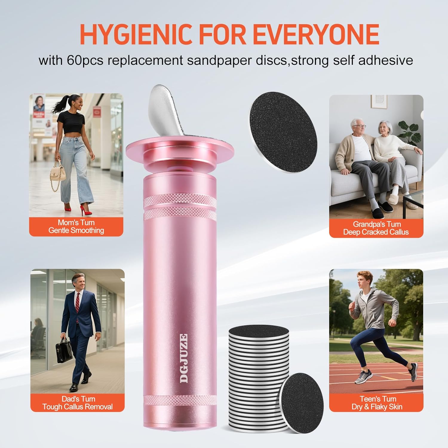- Designed with a metal body for durability,:this electirc foot filer is built to last. 60pcs replaceable sandpaper discs ensure clean and hygienic, one person one disc,making it a cost-effective solution for callus remover for feet.