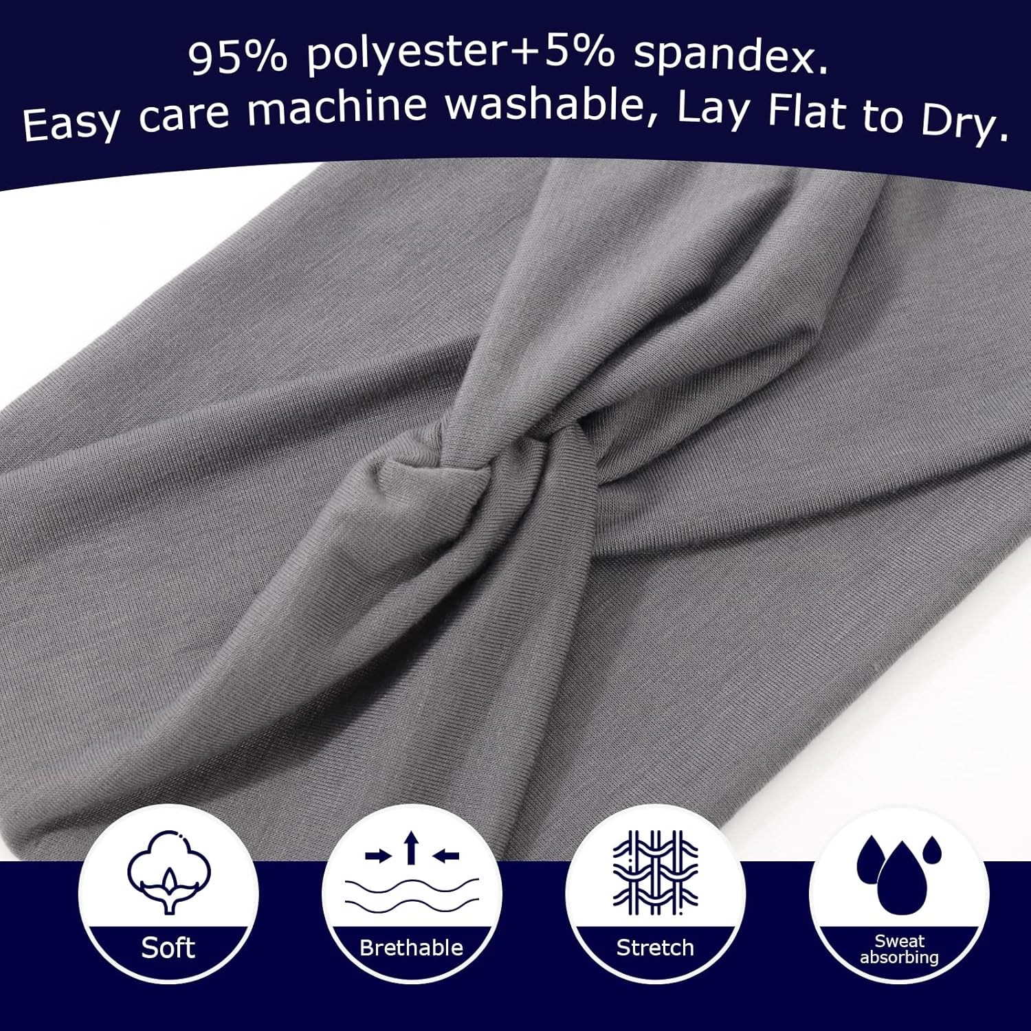- Great Material - AQOKKA headbands for women are made of high-quality polyester and spandex. The fabric is breathable and soft with excellent sweat absorption to keep your forehead dry without bringing a stuffy feeling, which can keep your forehead dry and cool without bringing a stuffy feeling. These headbands have excellent support, you can wear them all day without pain.