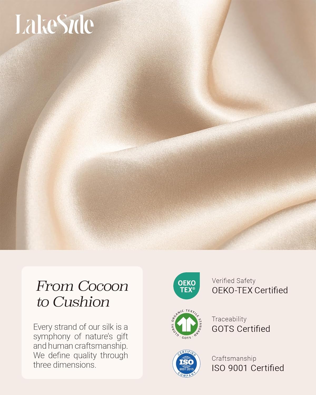 Oriental Lakeside® 100% Pure 22 Momme Mulberry Silk Pillowcase with Hidden Zipper - Nighttime Skincare & Hair Care Hydrating Pillow Cover