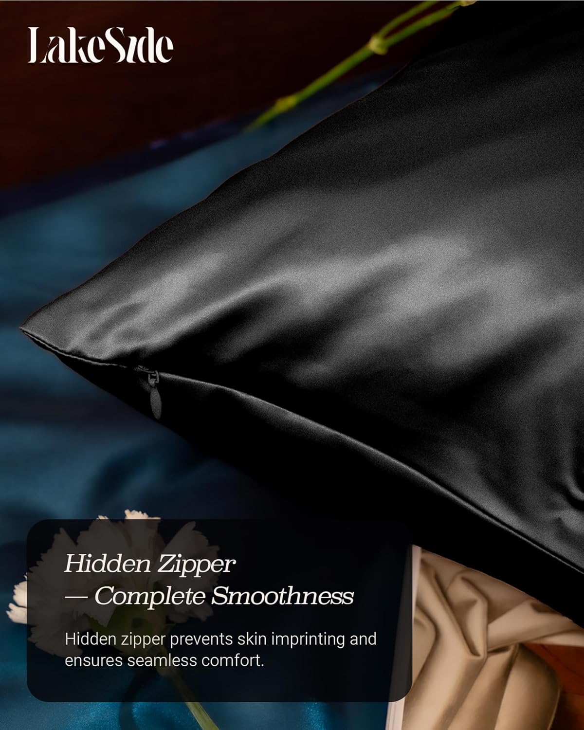 Oriental Lakeside® 100% Pure 22 Momme Mulberry Silk Pillowcase with Hidden Zipper - Nighttime Skincare & Hair Care Hydrating Pillow Cover
