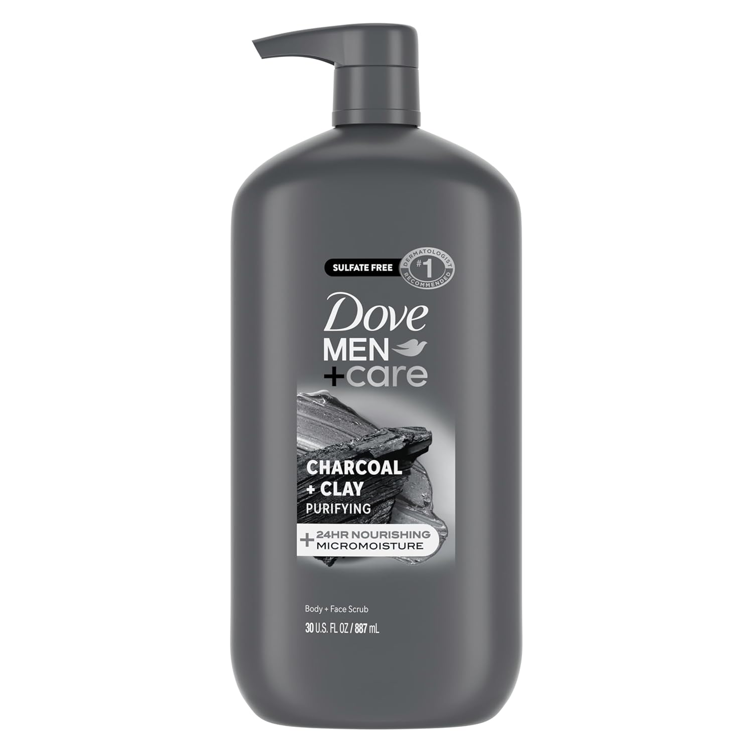 DOVE MEN + CARE Body and Face Scrub Charcoal + Clay Body Wash for Men with 24-Hour Nourishing Micromoisture Technology 30 oz