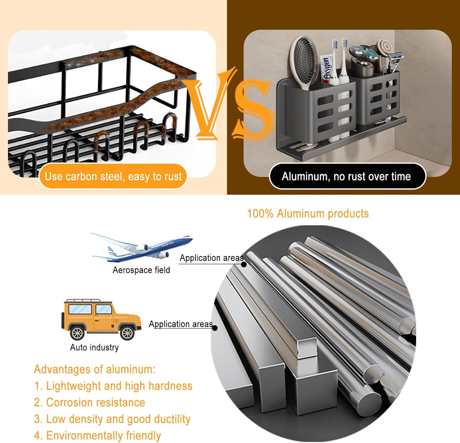 Aluminum Toothbrush Holder Self-Adhesive Hanging Bracket Shower Toothbrush Razor Holder Suitable for Toothbrush, Toothpaste, Razor and Comb etc Bathroom Storage
